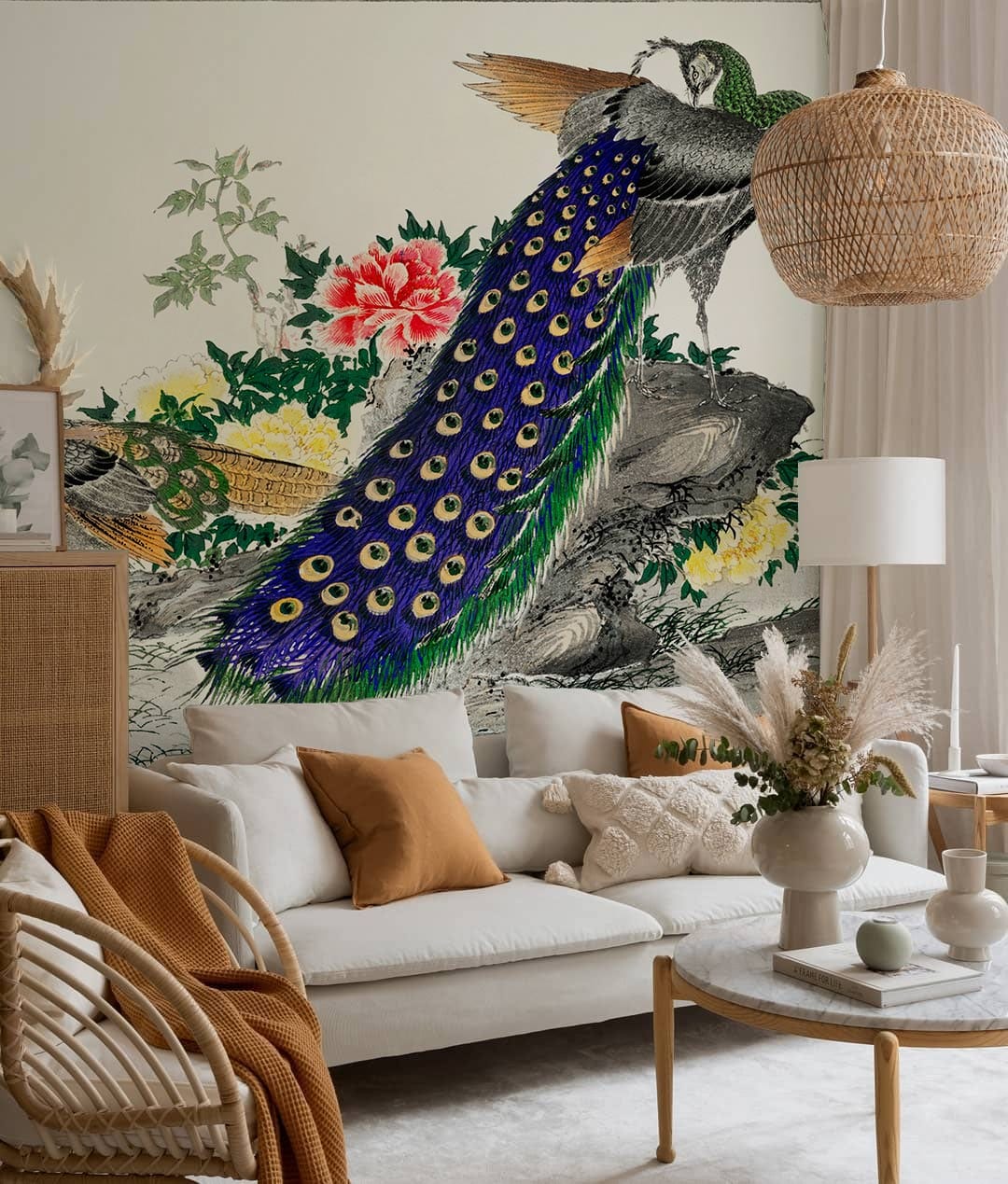 Peacock and Peony Wallpaper Mural
