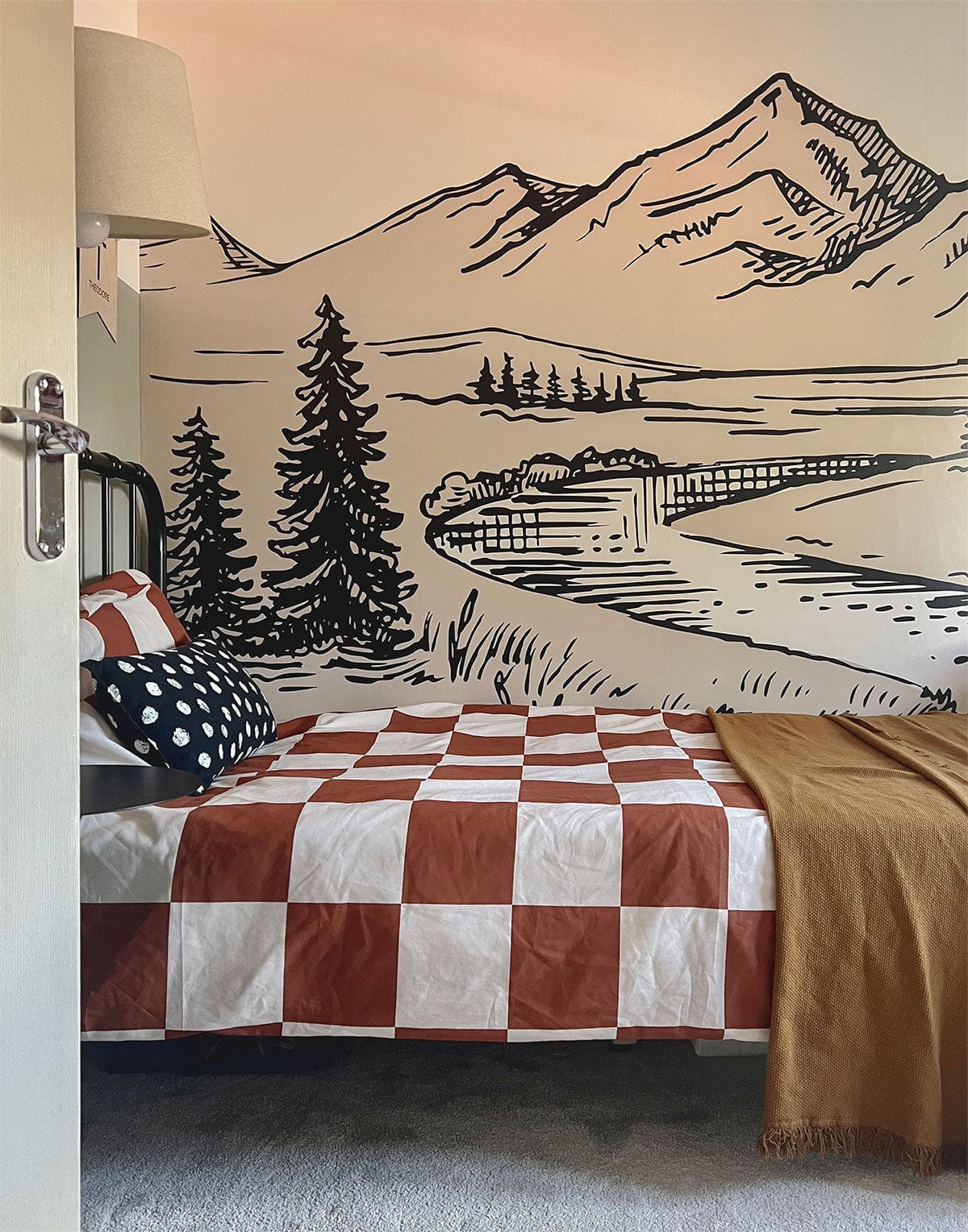 Enjoy the beauty of a beautiful mountain foot view wallpaper mural, with the vintage style, adding nostalgia tone into your interior space. This creative design is perfect for expressing your unique peronality and aesthetics while keeping the space minimal. Why not experiment with this landscape wallpaper in your bathroom, bedroom, living room for a vintage style.