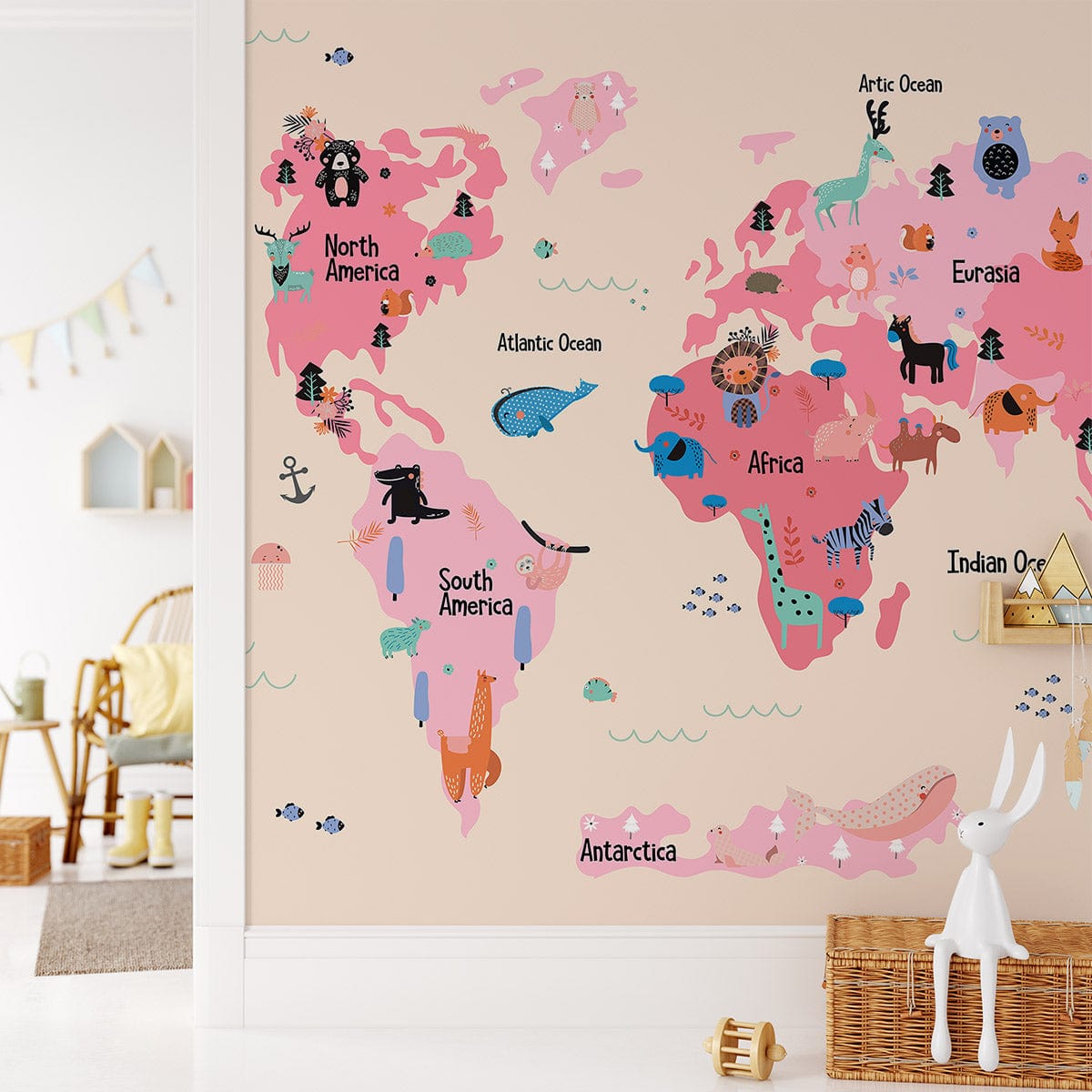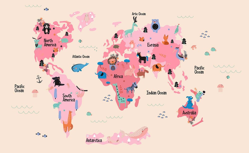 Pink Animal Map Wallpaper Mural