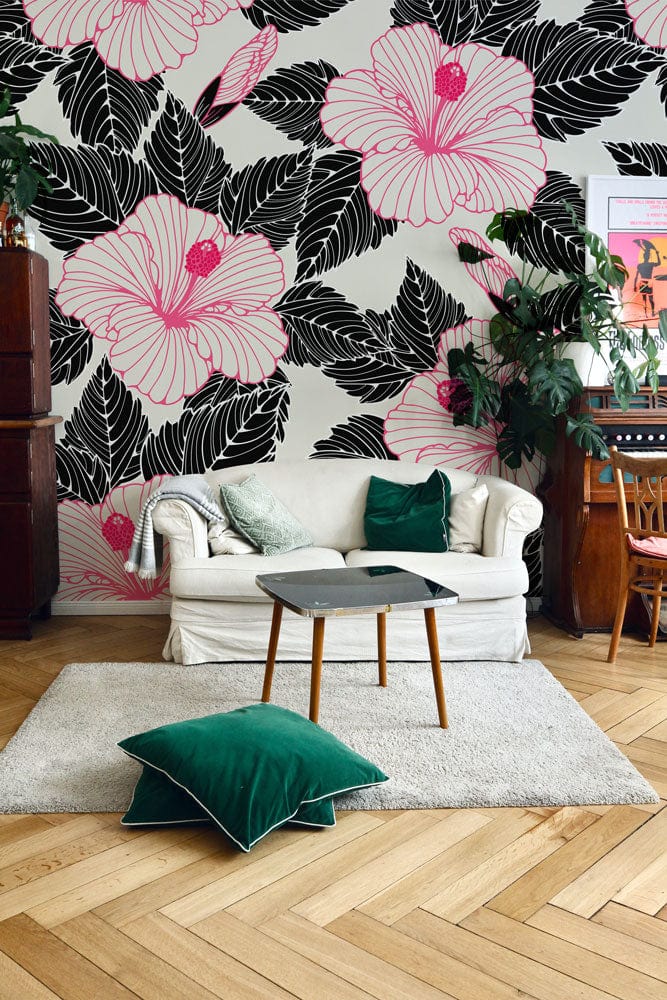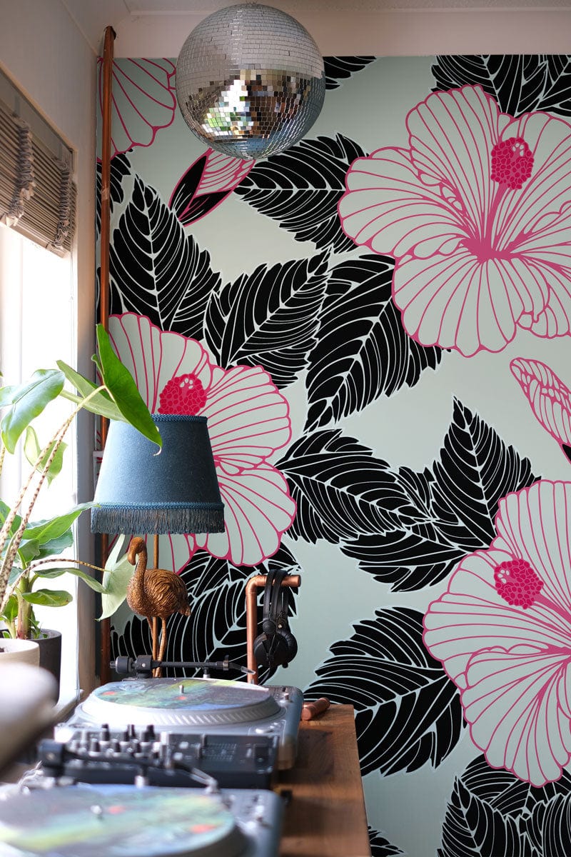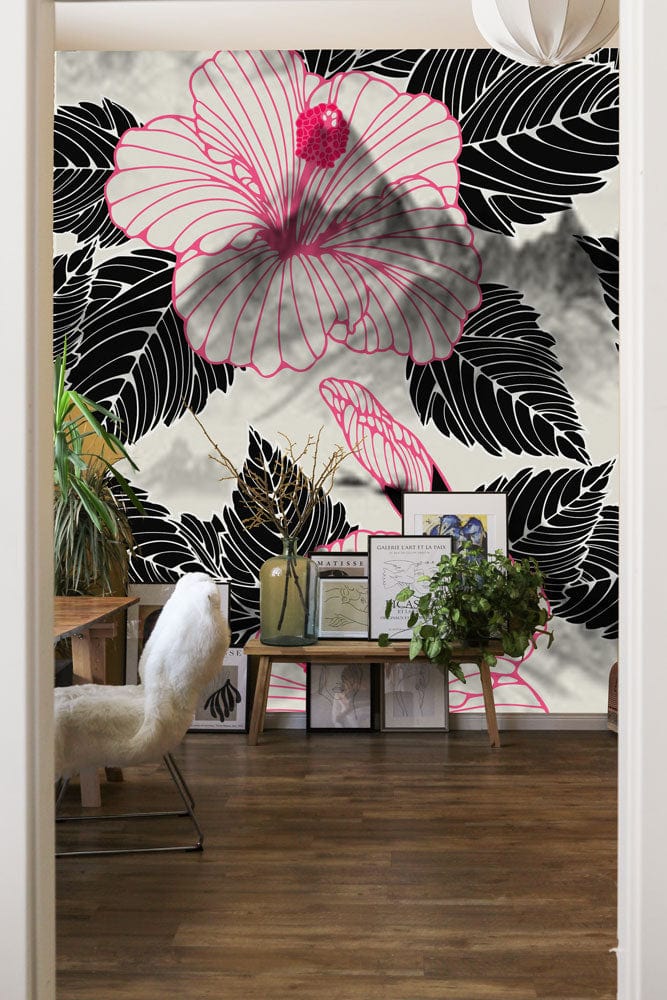 Delight in the captivating elegance of the Pink & Black Line Flowers Wallpaper Mural, where delicate pink blossoms entwine gracefully with bold black foliage. The intricate linework brings a touch of artistic flair, perfect for creating a statement wall. Its timeless allure makes it an exquisite choice for a variety of settings, offering a backdrop that is both stylish and sophisticated.