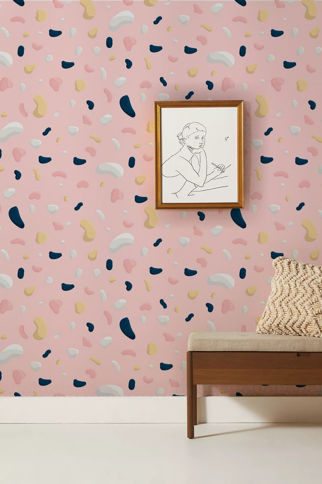 Get the simple look of terrazzo tiles on your walls with this gorgeous wallpaper mural.This on-trend pink terrazzo wallpaper will create a soothing effect and add simple grace to your living room, bedroom, dining room, bathroom and children's room. Ideal wall mural that works perfectly with any furniture styles.