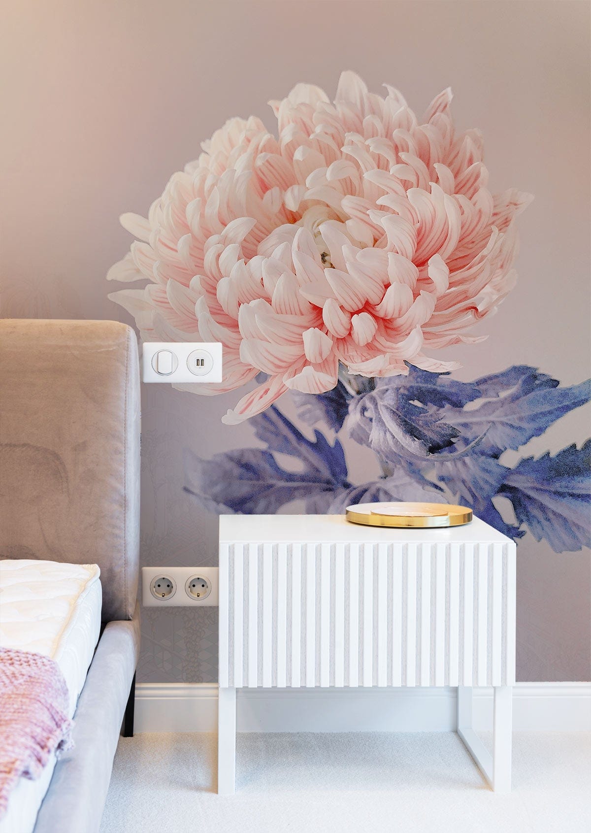 Immerse your space in refined elegance with the Pink Chrysanthemum Wallpaper Mural. This exquisite mural showcases a detailed chrysanthemum blossom in soft pink hues, set against a muted lavender backdrop. Delicate petals unfurl with a sense of serene sophistication, while the artwork's subtle texture introduces depth and visual interest. Perfect for creating a serene and stylish atmosphere, this mural beautifully complements a range of interior designs, from vintage charm to modern chic.
