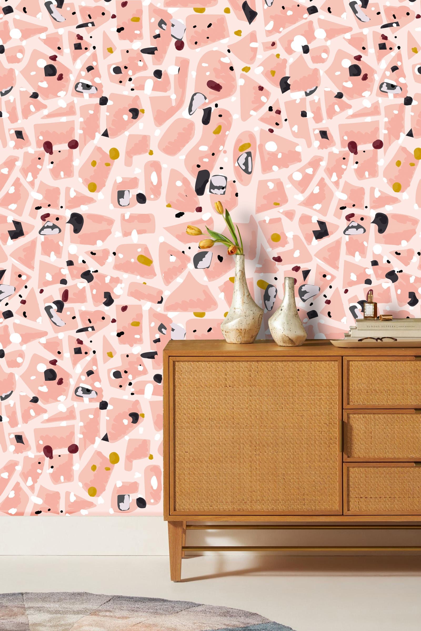 Get the simple look of terrazzo tiles on your walls with this gorgeous pastel wallpaper mural. This on-trend pink terrazzo wallpaper will create a soothing effect and add simple grace to your living room, bedroom, dining room, bathroom and children's room. Ideal wall mural that works perfectly with any furniture styles.