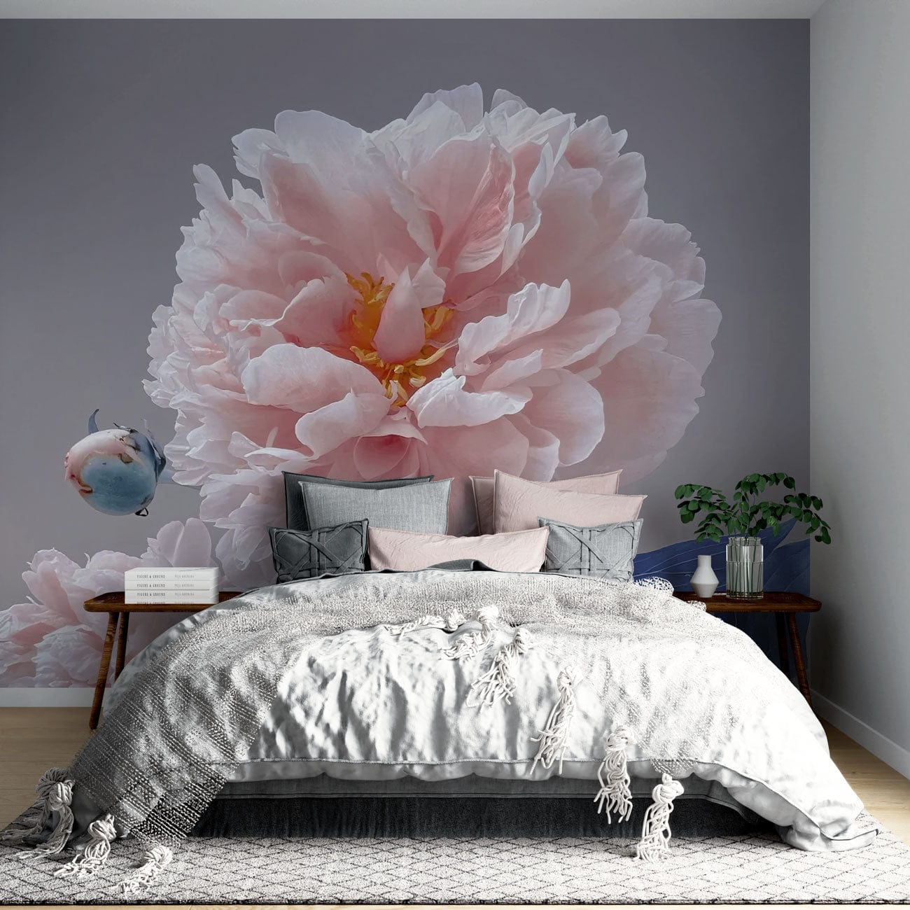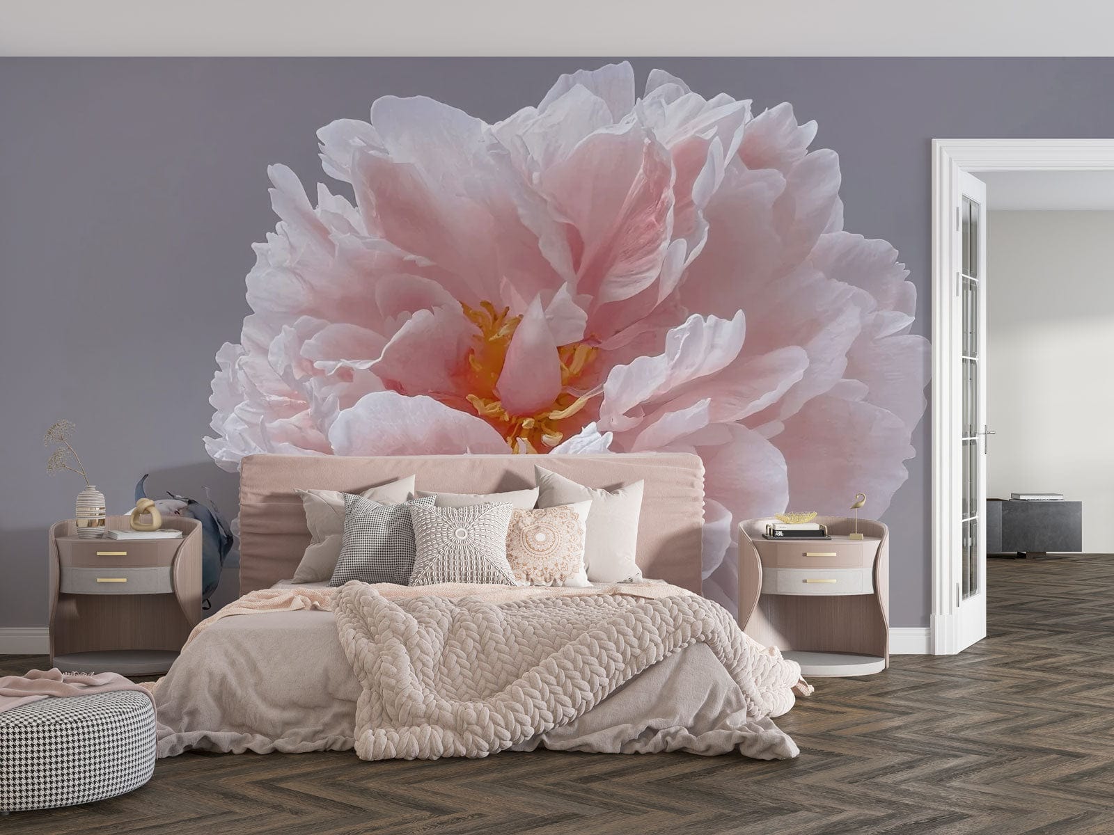 Exuding sophistication and timeless beauty, the Pink Peony Aroma Wallpaper Mural mesmerises with its delicate depiction of blooming peonies. The soft pink petals blend seamlessly against a serene background, enriched by subtle touches of deep blue foliage. This mural introduces a serene ambience, making it a captivating centrepiece for various interiors, where artistry meets elegance.
