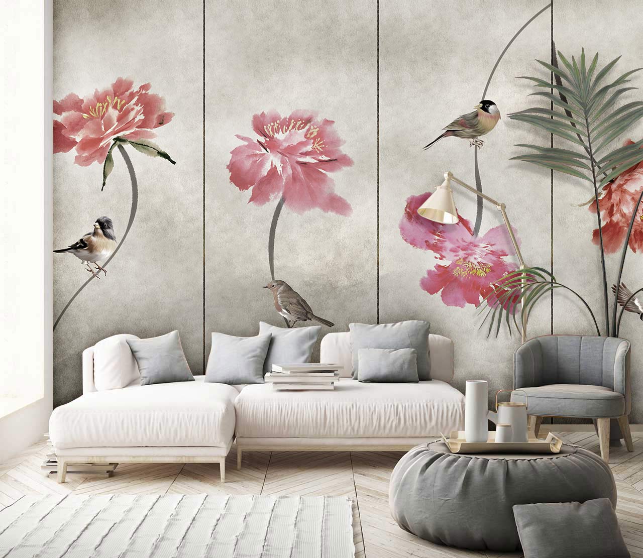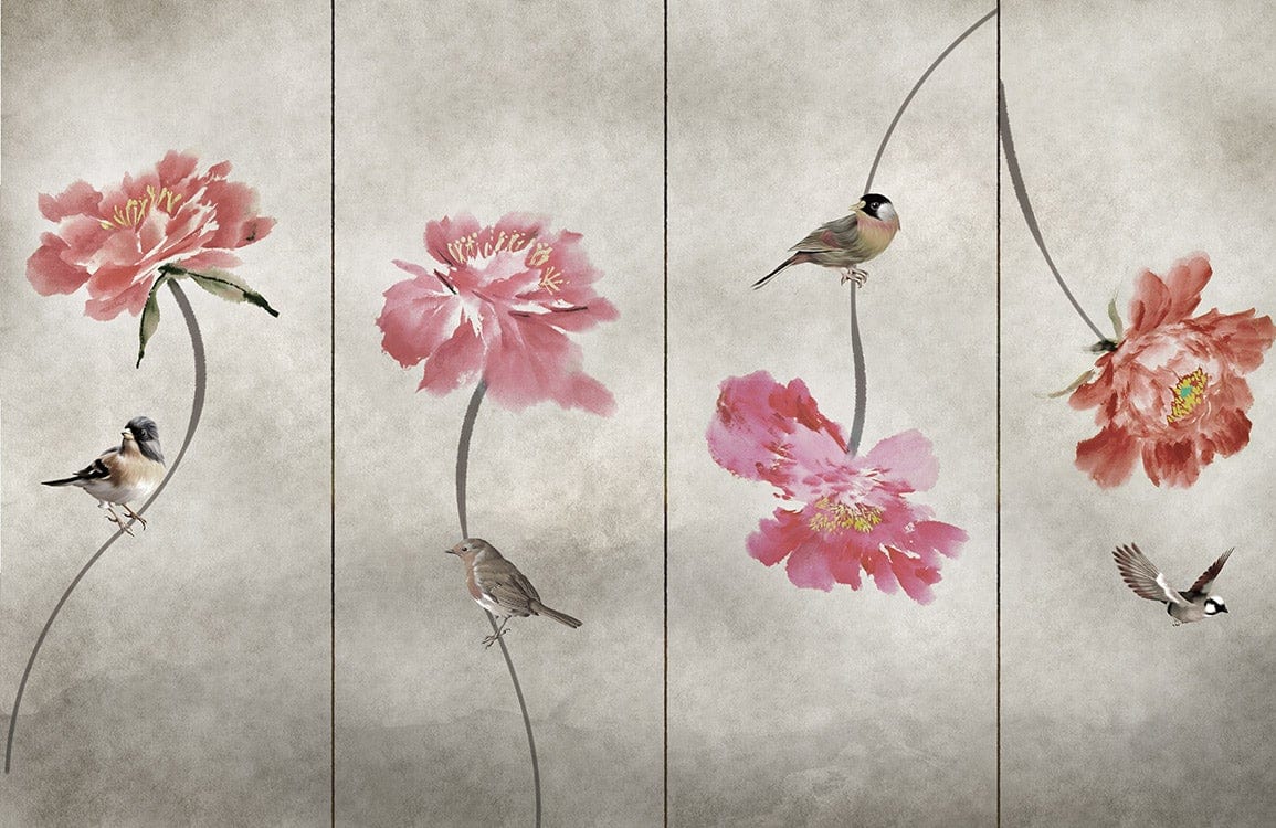 The Pink Peony Wallpaper Mural captures the serene beauty of delicate peonies and graceful birds set against a soft, muted background. Its exquisite details offer a sense of timeless elegance, making it a versatile choice for any sophisticated space. The mural's intricate textures bring nature indoors, creating an ambience of tranquil refinement that complements both classic and contemporary interiors.
