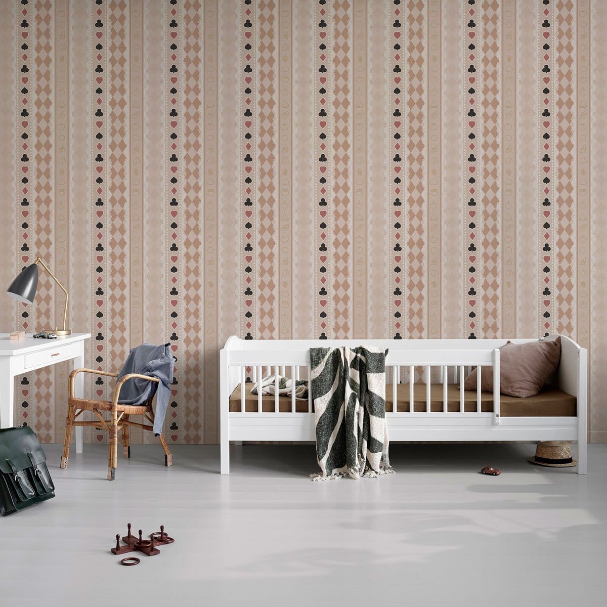 The Repeated Cards Wallpaper Mural presents a harmonious blend of geometric patterns and subtle symmetry, drawing inspiration from classic card motifs. Its refined arrangement of suits in warm beige, soft cream, and deep black creates a layered yet unobtrusive visual texture, making it an ideal choice for those seeking a sophisticated backdrop. This tasteful design seamlessly complements both traditional and contemporary interiors, gracefully defining spaces with an understated elegance.