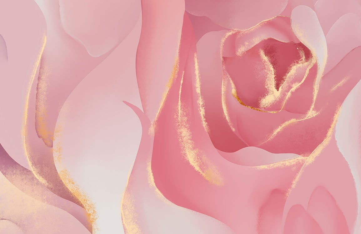 Experience an exquisite bloom with the Pink Rose Wallpaper Mural, where soft pink petals gracefully entwine, touched with delicate gold accents. This artistic masterpiece exudes sophistication and is perfect for creating a serene and timeless atmosphere in any setting.