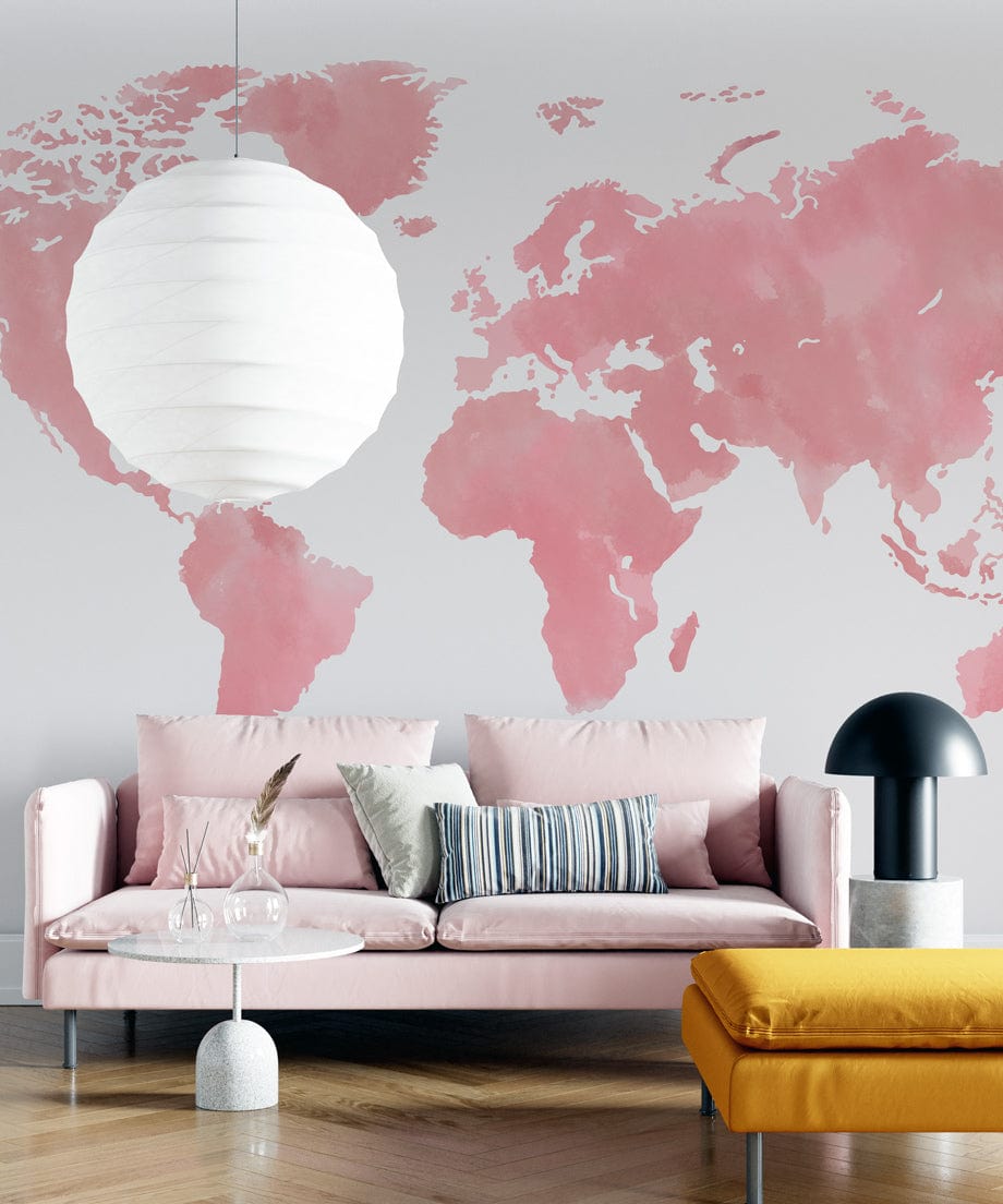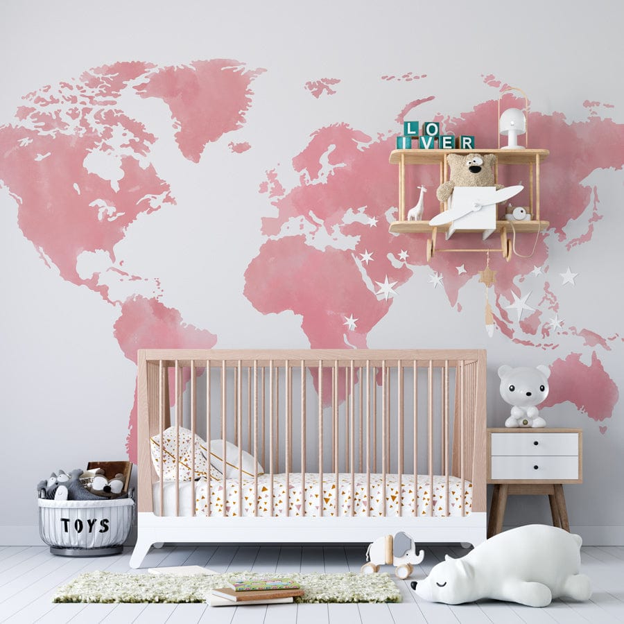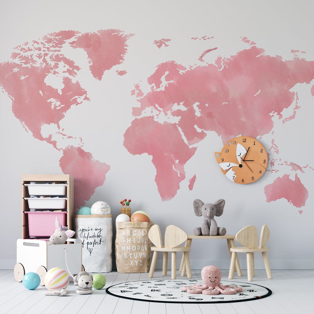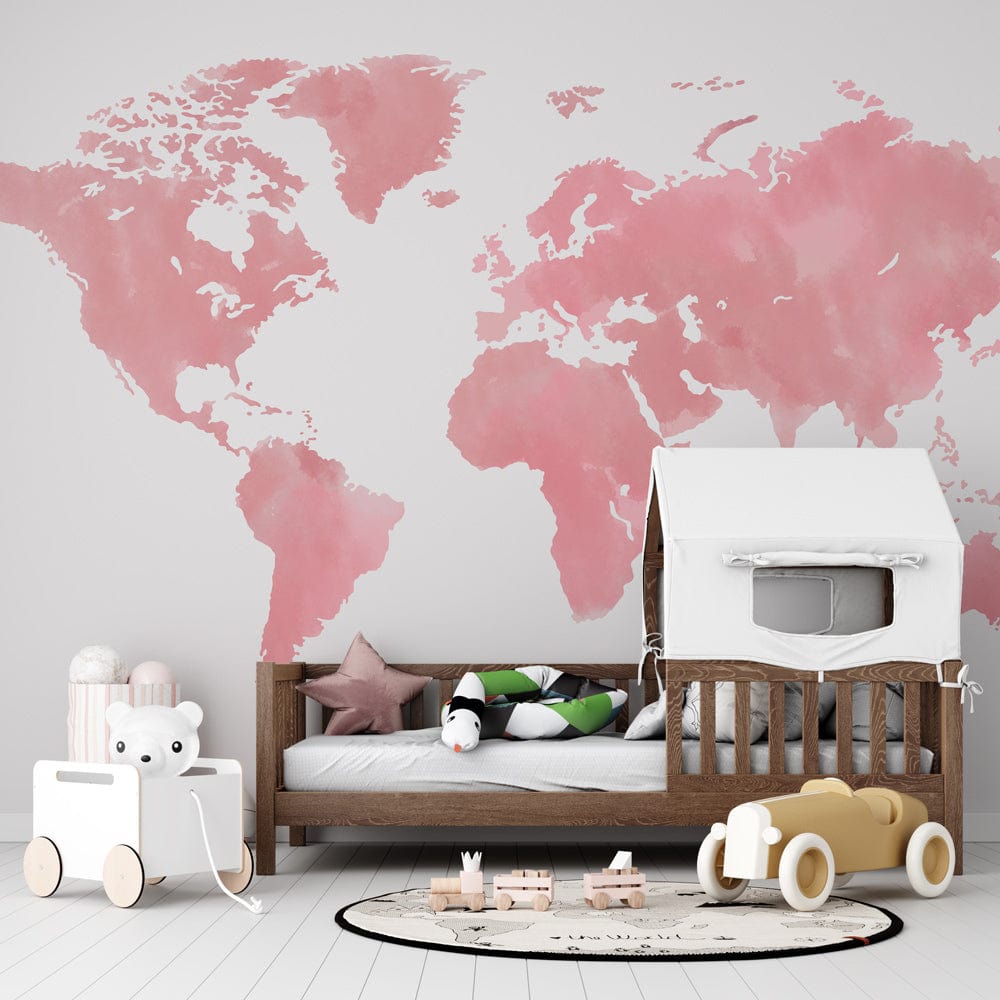Immerse your space in elegance with this Pink Watercolor World Map Wallpaper. Featuring delicate brush strokes, its gentle hues interweave to form a stunning global tapestry, offering an exquisite focal point that combines sophistication with a sense of wanderlust. It's the perfect choice for those seeking an artistic touch that complements a wide range of interior styles.