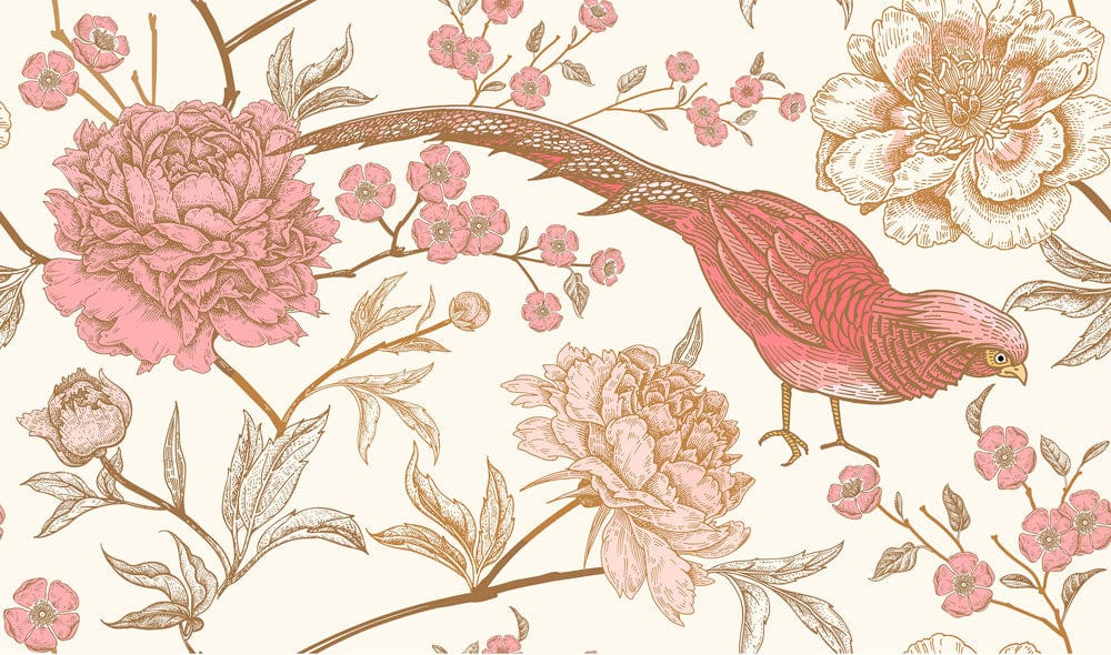 The Pink World Wallpaper Mural exudes a refined elegance, featuring intricate botanical artwork that breathes life into any setting. Its detailed depiction of florals and birds in soft pink and sand tones evokes a serene yet sophisticated atmosphere. Perfectly suited for diverse environments, it offers a timeless charm that complements both classic and contemporary interiors.