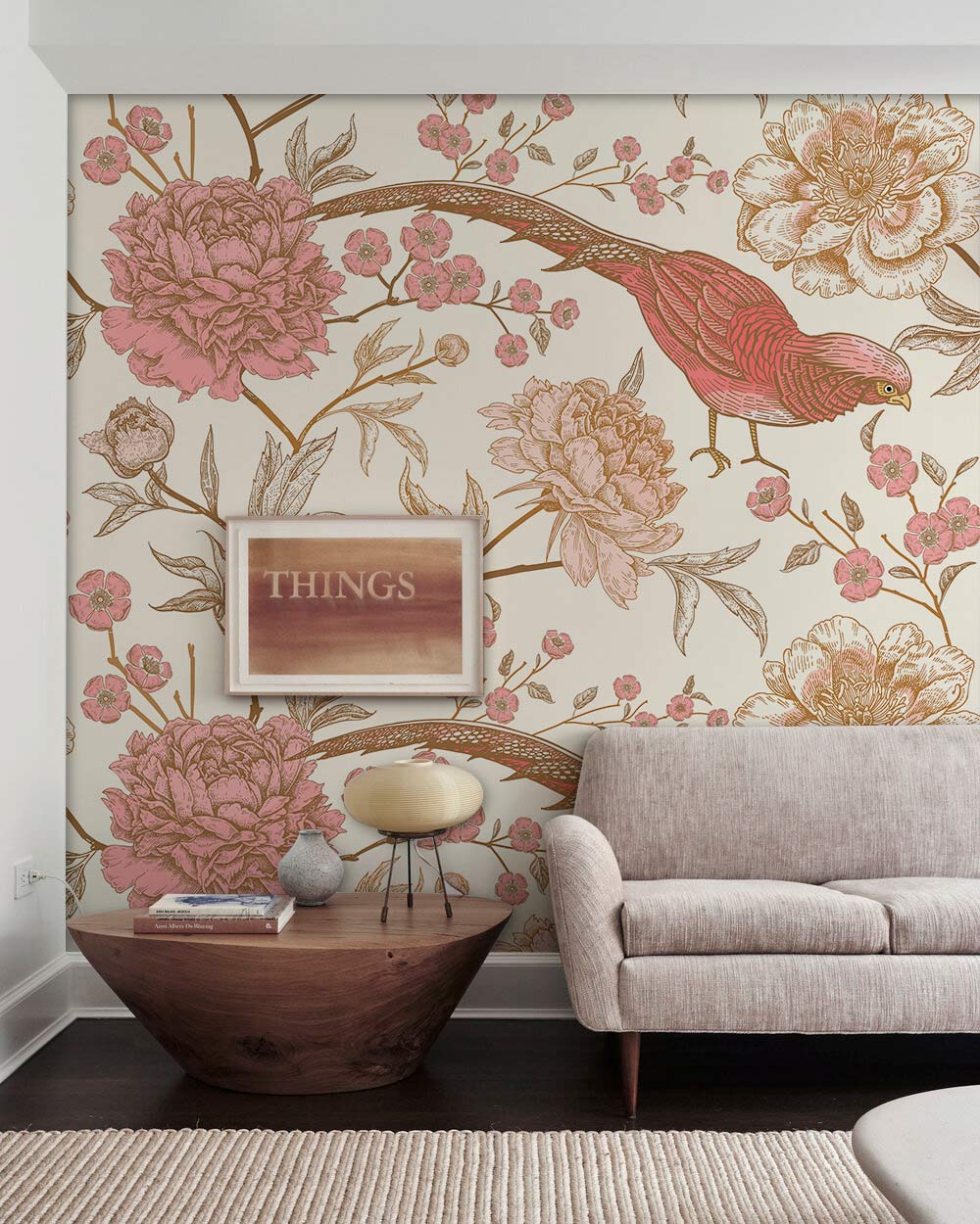 A Pink World Wallpaper Mural can transform any home into a tropical haven. This vintage wallpaper, which has an elegant-looking bird on a branch of a vibrant tree, is guaranteed to offer the exact aesthetic touch you've been looking for. The lovely twitter of the large bird infuses your interior decor with a sense of nature and bird watching. This floral wall d茅cor is ideal for your home or apartment since it offers a stylish colour palette of gold, white, and pink to your walls.