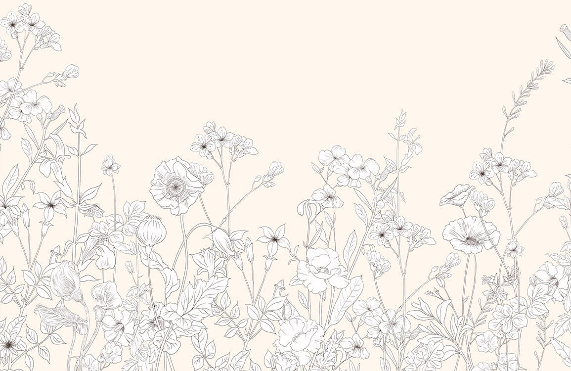 The Plain Coloured Flowers II Wallpaper Mural offers a delicate array of intricately sketched florals set against a soft beige canvas. Each blossom unfolds with exquisite detail, creating a serene tapestry that whispers elegance. Perfectly poised to enhance living spaces, its understated charm seamlessly complements both contemporary and classic interiors.