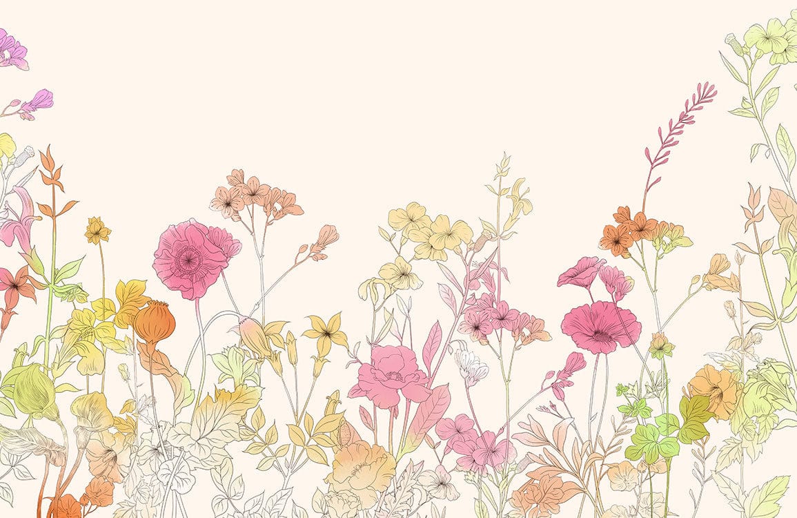 Delight in a tapestry of nature with this Plain Coloured Flowers Wallpaper Mural, where delicate floral designs are elegantly sketched against a soft backdrop. The mural's gentle tones and intricate detailing bring a sense of calm and refinement, perfect for adding a sophisticated touch to any interior. Its timeless design seamlessly balances simplicity and elegance, making it a compatible choice for diverse settings.