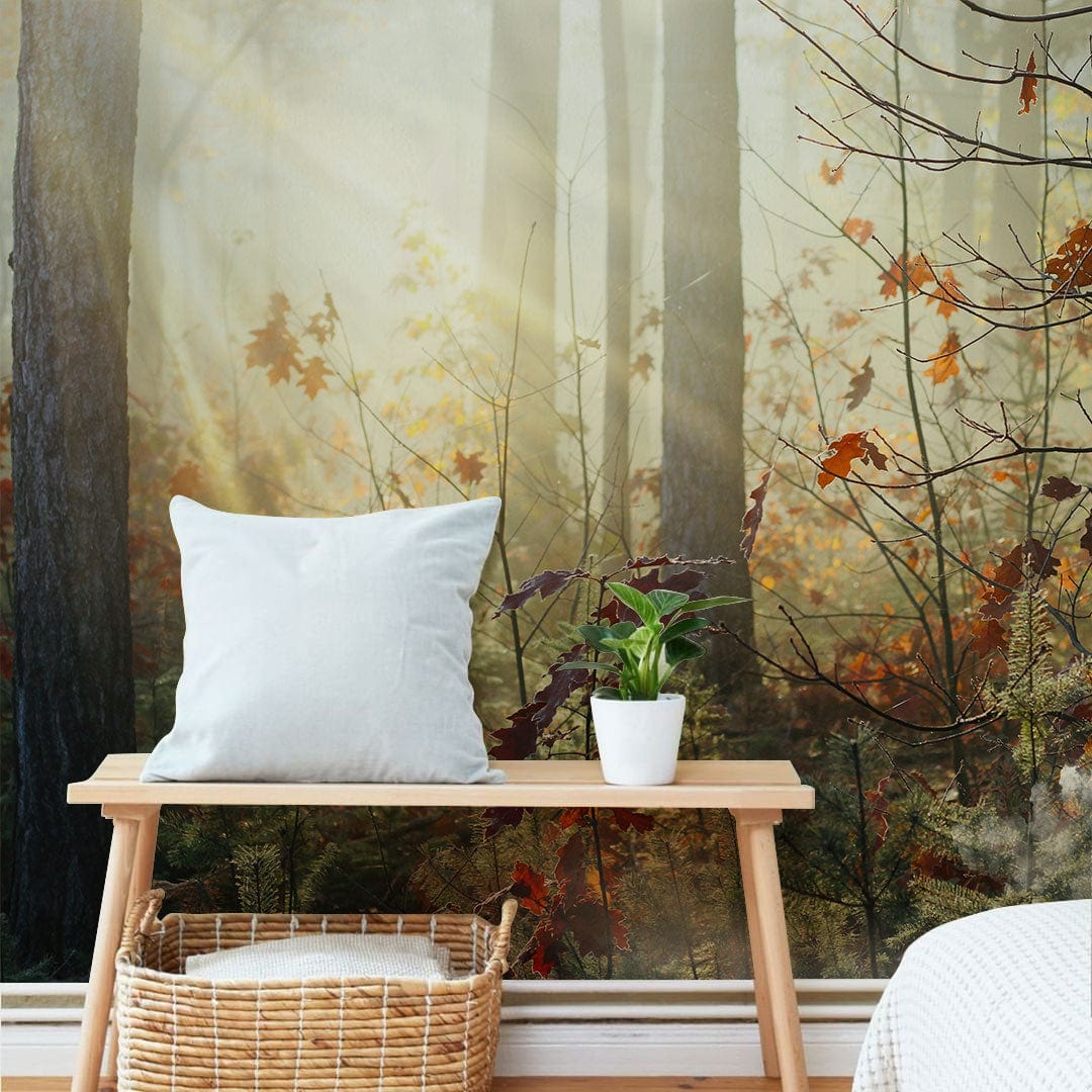 Immerse yourself in the serene beauty of the 'Plants Enjoy Autumn Sunshine' wallpaper mural, where delicate sunlight filters through a lush forest canopy. This mural features intricate patterns of rust-coloured foliage set against the soft glow of dawn, capturing the tranquility of autumnal mornings. Perfectly suited to both contemporary and traditional settings, this design invites a warm, inviting atmosphere into your home.