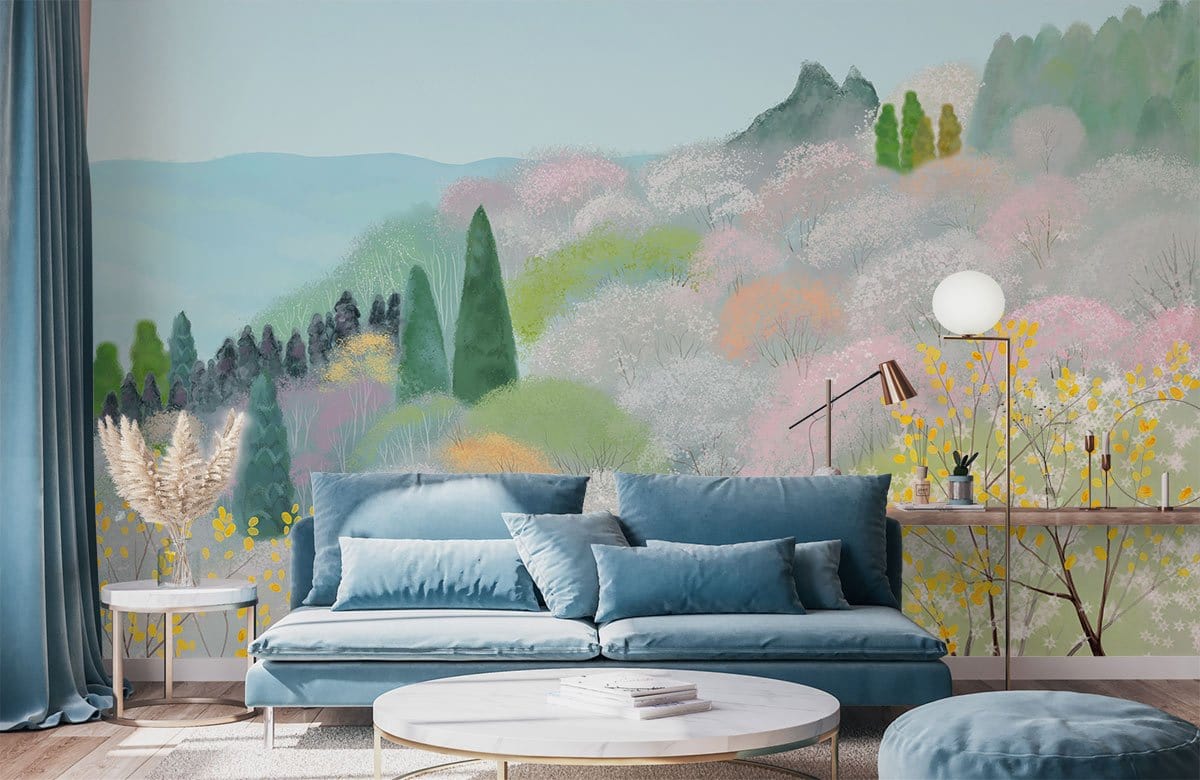 Does this mural wallpaper make you feel a lovely cold breeze? Looking at this landscape makes you relaxed? What are you waiting for, bring this relaxation home and make it yours. Imagine looking at this calming view the first thing at the morning every day. Our Plum blossom design will upscale the area and widen the place because of the light pastel colours in the used pallet. You can use it in any place at your home and it will do its magic wherever it gets located. It is a masterpiece in its own where its colours are matching to anything that you can decorate it with. Just few simple touches and your home will be a paradise on earth.