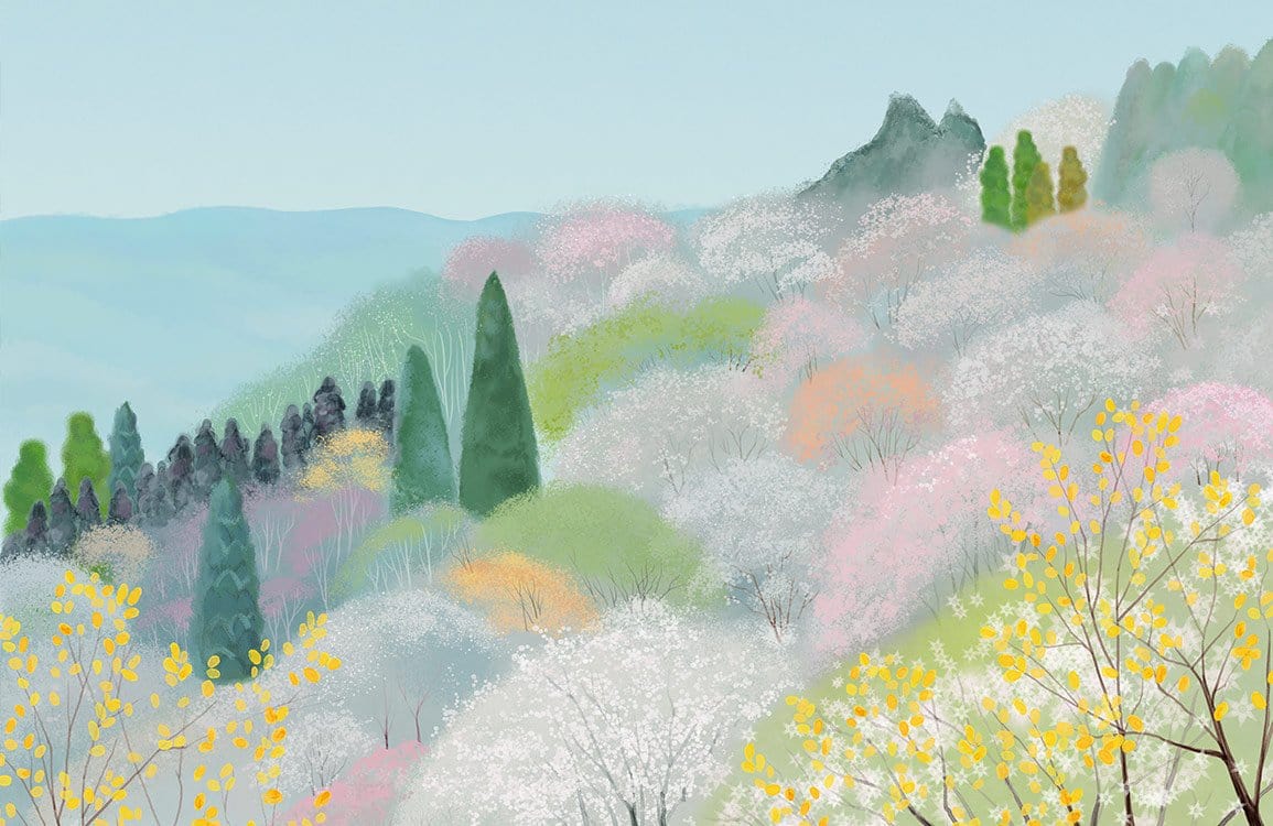 The Plum Blossom Wallpaper Mural evokes a serene landscape, with delicate blossom motifs against a backdrop of softly rolling hills. Its intricate depiction of nature's quiet beauty is accentuated by the subtle interplay of hues, creating an artful scene that invites contemplation and relaxation. The mural's exquisite details lend a sophisticated touch, seamlessly fitting into a range of interior décors.