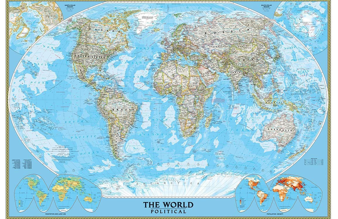 This Political Map Wallpaper Mural brings the world into your space with a sophisticated design, highlighting intricate geographical details and vibrant countries. Its cartographic artistry and delicately textured surface create a focal point that seamlessly integrates into any environment, offering a timeless allure.