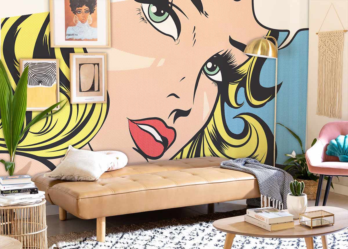 This Pop Female Wallpaper Mural presents an exquisite blend of vintage artistry with a modern twist. Its bold lines and expressive design capture the essence of classic pop art, while vibrant colours infuse life and character into any space. Elegant contours and meticulous detailing create a visually striking feature that adds a timeless ambience, perfect for both lively and serene interiors.