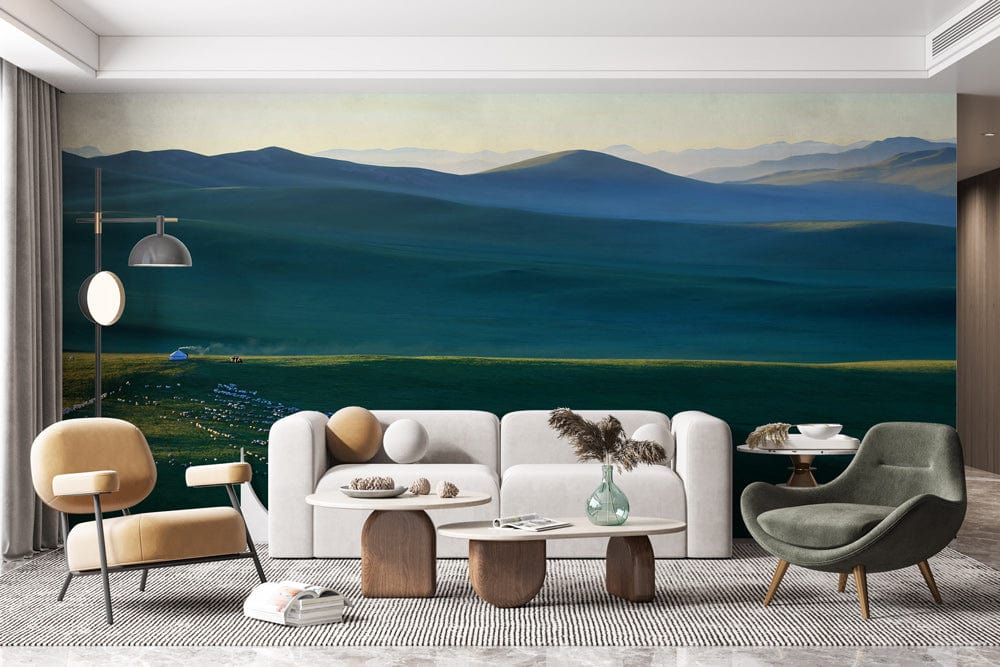 Immerse your space in the serene beauty of nature with the Prairie Flock Wallpaper Mural. Featuring sweeping vistas of lush greens and undulating hills, it captures the tranquil essence of the countryside. The soft interplay of natural shades and delicate flock patterns brings a refined elegance to any room, creating an atmosphere of calm sophistication.