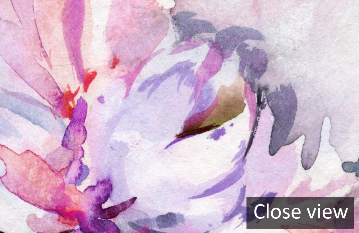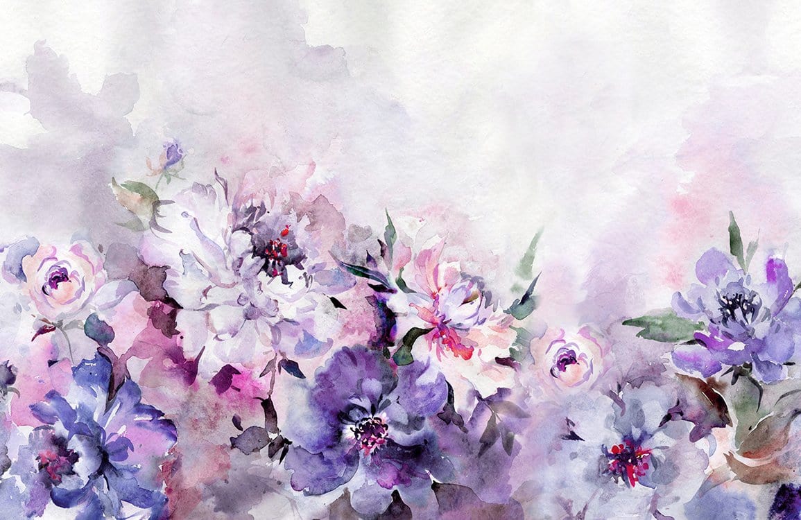 Immerse your space in sophistication with this Purple Flowers Wallpaper Mural. Delicate blooms in rich purples and soft whites orchestrate a serene and elegant atmosphere. Crafted for artistic allure, this mural's watercolour textures convey exquisite depth, making it an ideal choice for creating a timeless ambience in any room.