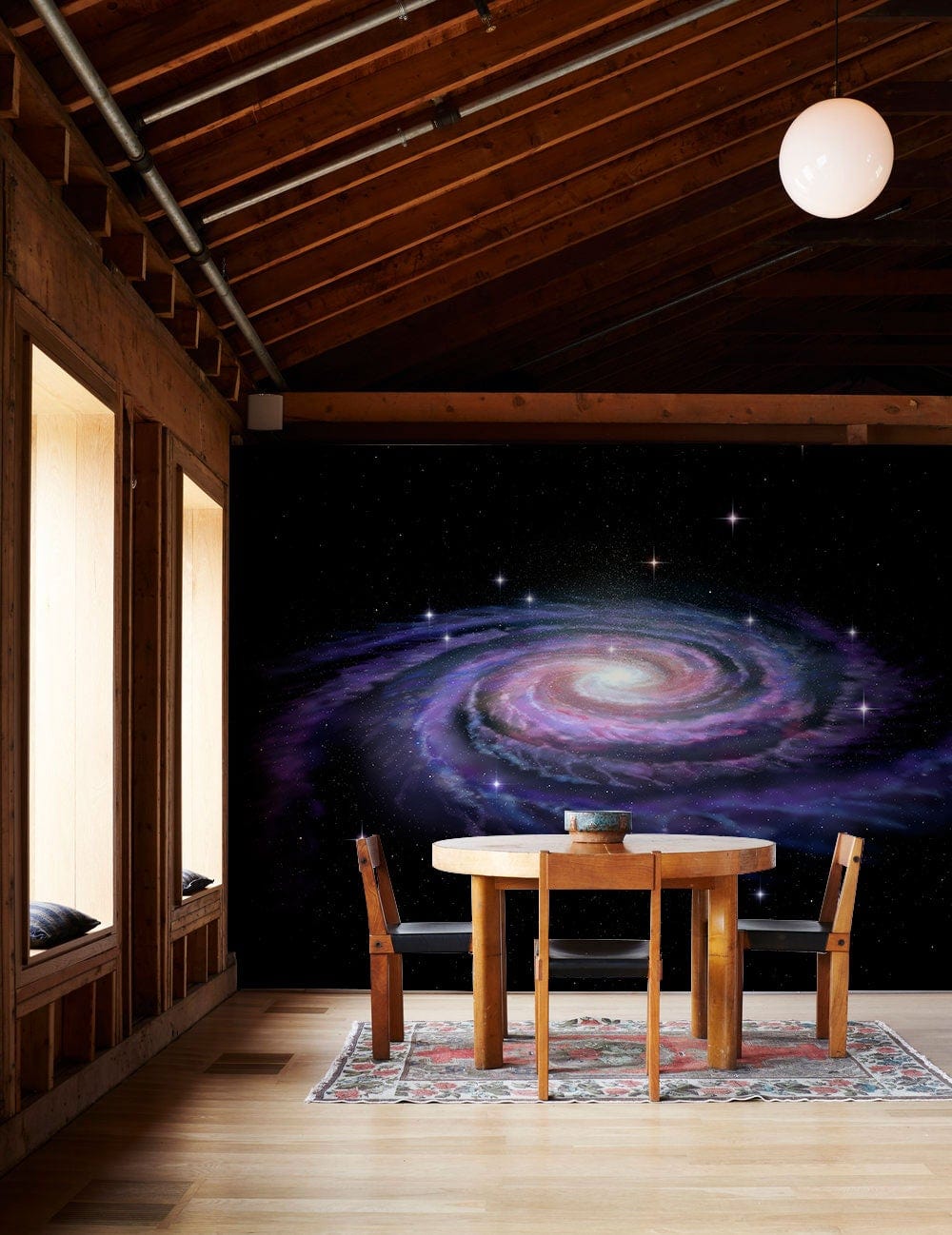 Immerse your space in the celestial beauty of the Purple Milky Way Wallpaper Mural. This exquisite design captures the swirling majesty of the galaxy, blending deep purples and ethereal blues with specks of shimmering white stars. Its dynamic and artistic detail promises to infuse any room with a sense of wonder, making it a stunning focal point that fits beautifully within contemporary or eclectic settings.