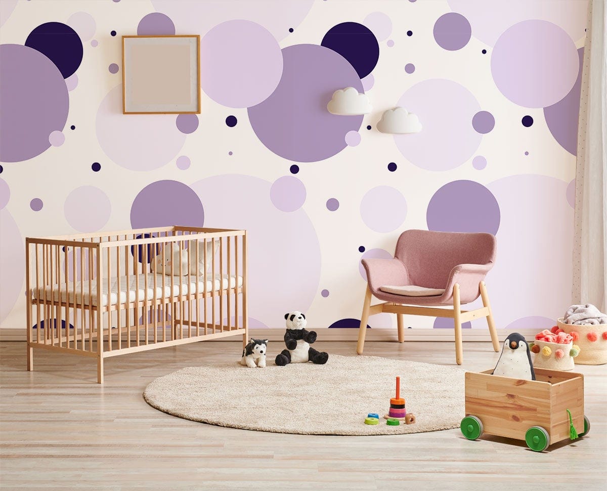 Step into a world of playful sophistication with the Purple Polka Dots Wallpaper Mural, where varying shades of purple create a captivating pattern against a bright backdrop. This artistic display of circular motifs introduces a rhythmic elegance that breathes fresh air into any space. The juxtaposition of light and dark hues adds depth, inviting a serene yet dynamic ambience. Perfect for those who appreciate a touch of whimsy with a polished finish, this mural harmoniously integrates into diverse settings, from contemporary to artistic interiors.