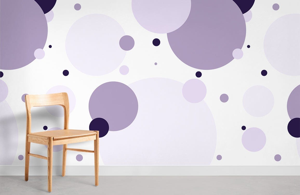 Step into a world of playful sophistication with the Purple Polka Dots Wallpaper Mural, where varying shades of purple create a captivating pattern against a bright backdrop. This artistic display of circular motifs introduces a rhythmic elegance that breathes fresh air into any space. The juxtaposition of light and dark hues adds depth, inviting a serene yet dynamic ambience. Perfect for those who appreciate a touch of whimsy with a polished finish, this mural harmoniously integrates into diverse settings, from contemporary to artistic interiors.