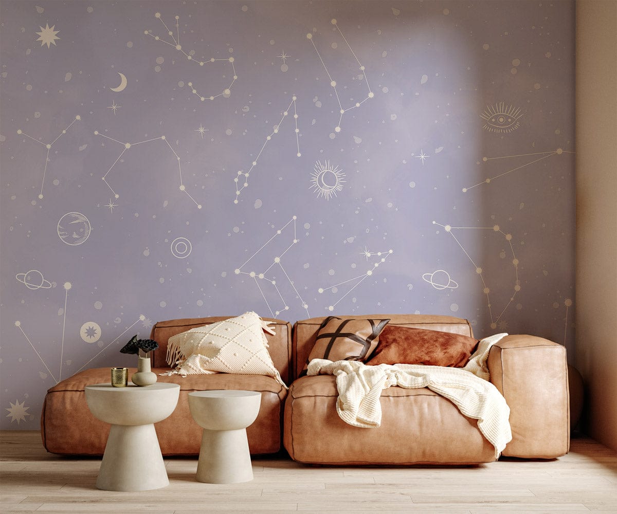 The Purple Stars Wallpaper Mural captures the marvellous essence of a starlit night with its delicate constellation patterns against a serene lilac sky. Fine lines detail each star cluster, while soft celestial accents add depth to the design, creating a visually soothing escape. Ideal for any home, this sophisticated mural adds a touch of stellar elegance to your walls.