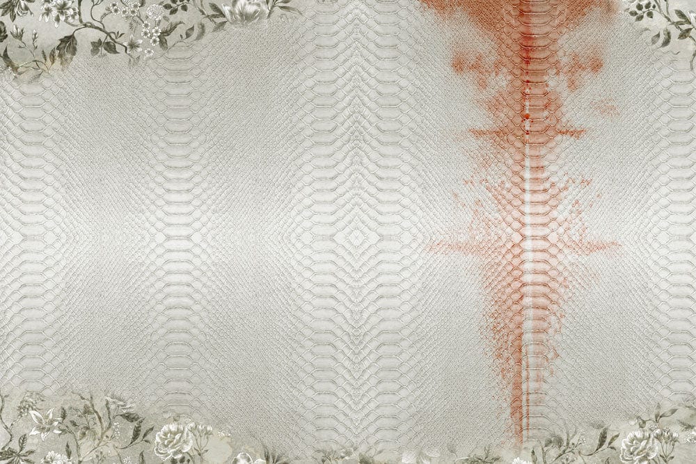 The Python Skin on Flowers Wallpaper Mural intricately merges nature's elegance with artistic flair, showcasing a subtle blend of reptilian textures and delicate floral motifs. Its exquisite patterns invite a sense of calm and allure, making it an ideal choice for spaces seeking a touch of opulence. The mural's richly detailed surface is designed to captivate, blending seamlessly into a variety of interiors.
