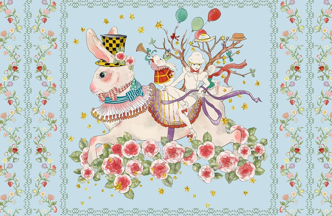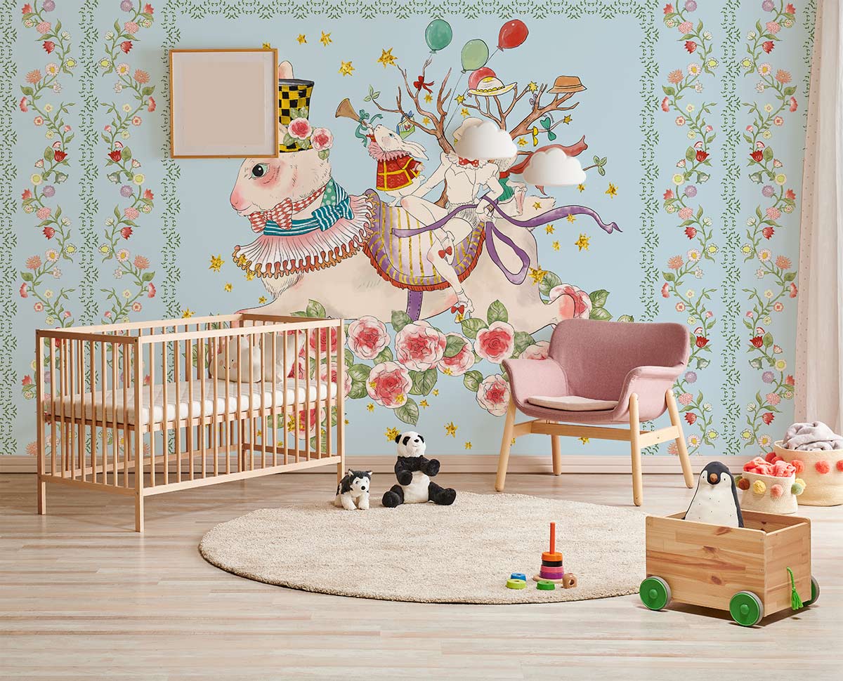 Rabbits Flowers & Girl ll Wallpaper Mural