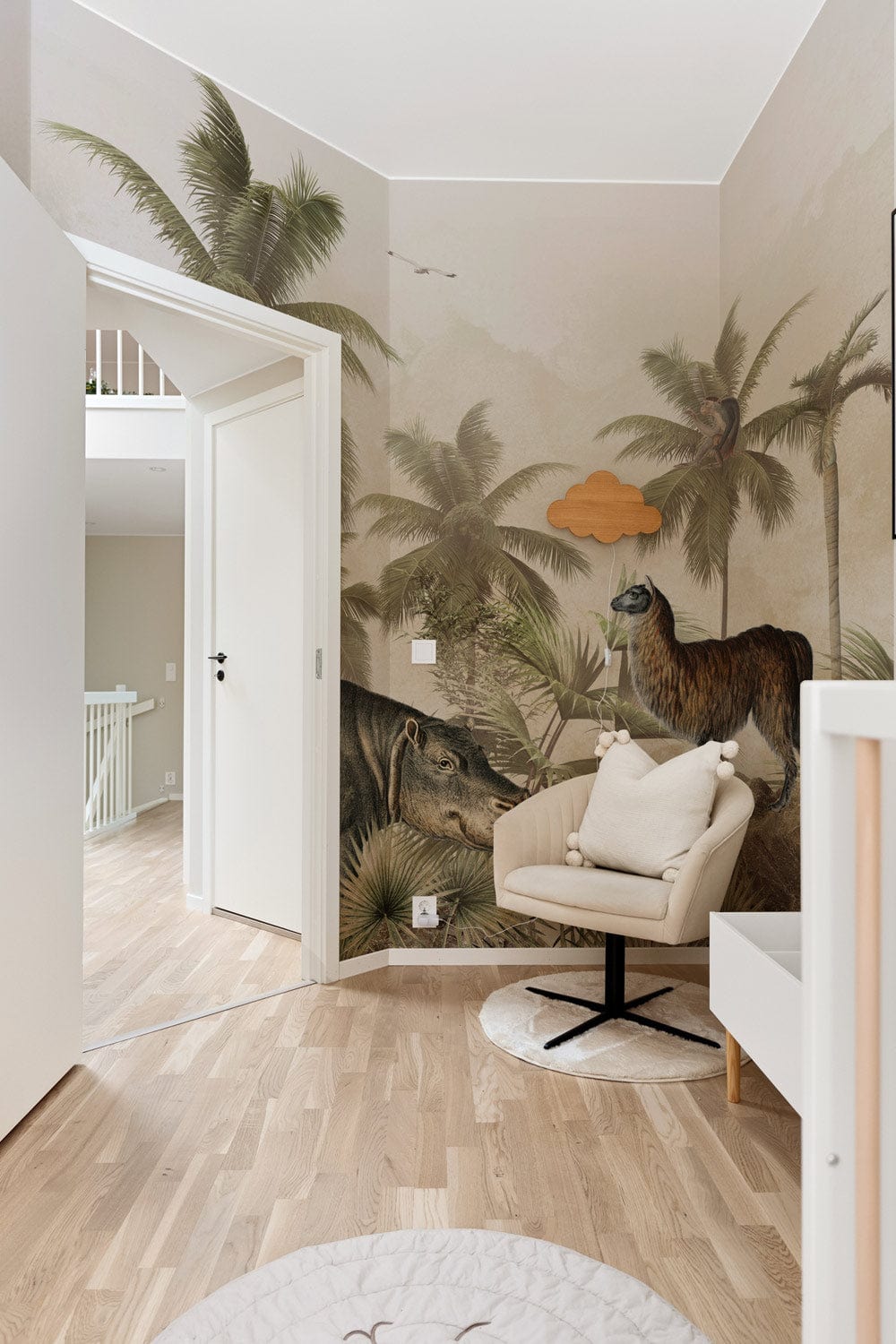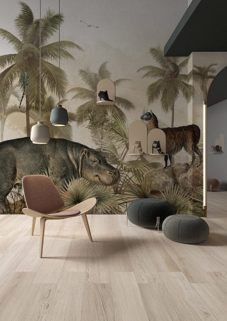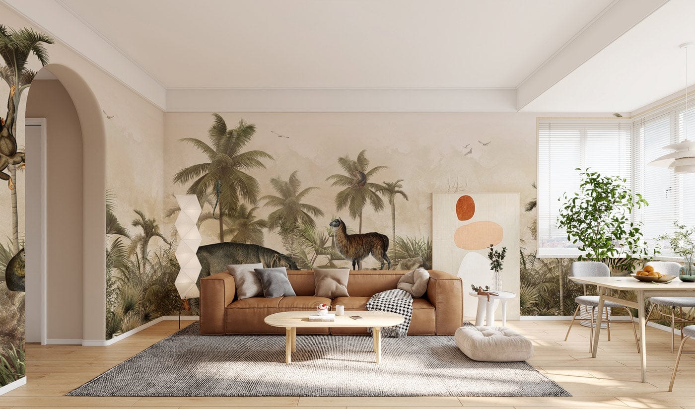 Immerse yourself in the verdant expanse of the Rainforest Adventure Mural Wallpaper, where intricate tropical leaves and exotic wildlife come alive with remarkable detail. This artistic mural combines lush greens with earthy tones, creating a serene backdrop that evokes the untouched beauty of nature. Perfectly suited for a variety of settings, it brings a touch of sophistication to any room.