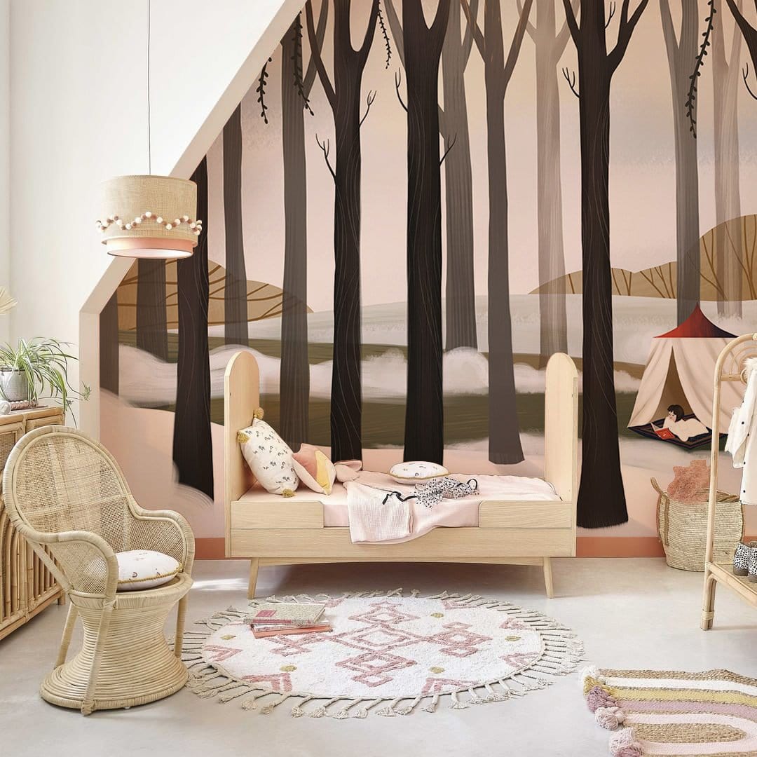 This adorable woods motif mural wall covering is ideal decor to use as a background. This beautiful amazing painting of a girl reading a book in a peaceful forest will be perfect for your child's bedroom, playroom living room and hallway. Interesting rendering with a natural atmosphere and a refreshing wall decoration perfect for your kids.
