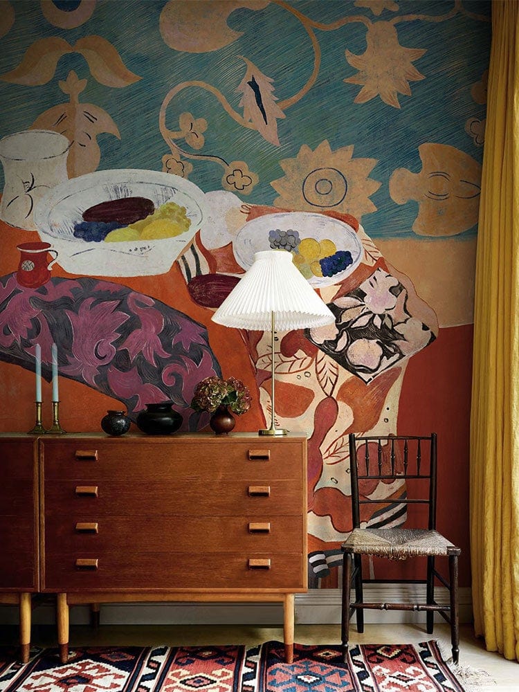 Time to get your dining room a new look! This beautiful hand drawn afternoon tea wallpaper mural under red background is a perfect wall mural that not only transform boring space into something eye-catching, but also stimulate your appetite. Works great with both traditional and modern style furniture home decorations.