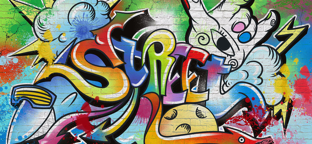 Add a burst of artistic fun to your decor with this hip-hop art graffiti mural wallpaper. An explosion of bright and bold colours creates an eye-catching urban design that captures the essence of authentic street art and the spirit of urban life. This mural wallpaper is perfect for adding a pop of urban chic to living rooms and workspaces. Show your style by this fierce and innovative wallpaper that also brings the edgy, street look of art graffiti inside your home.