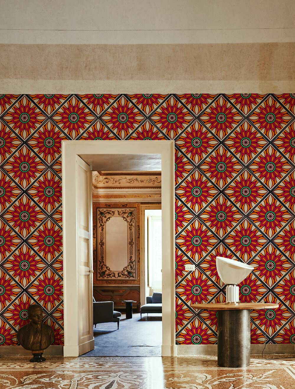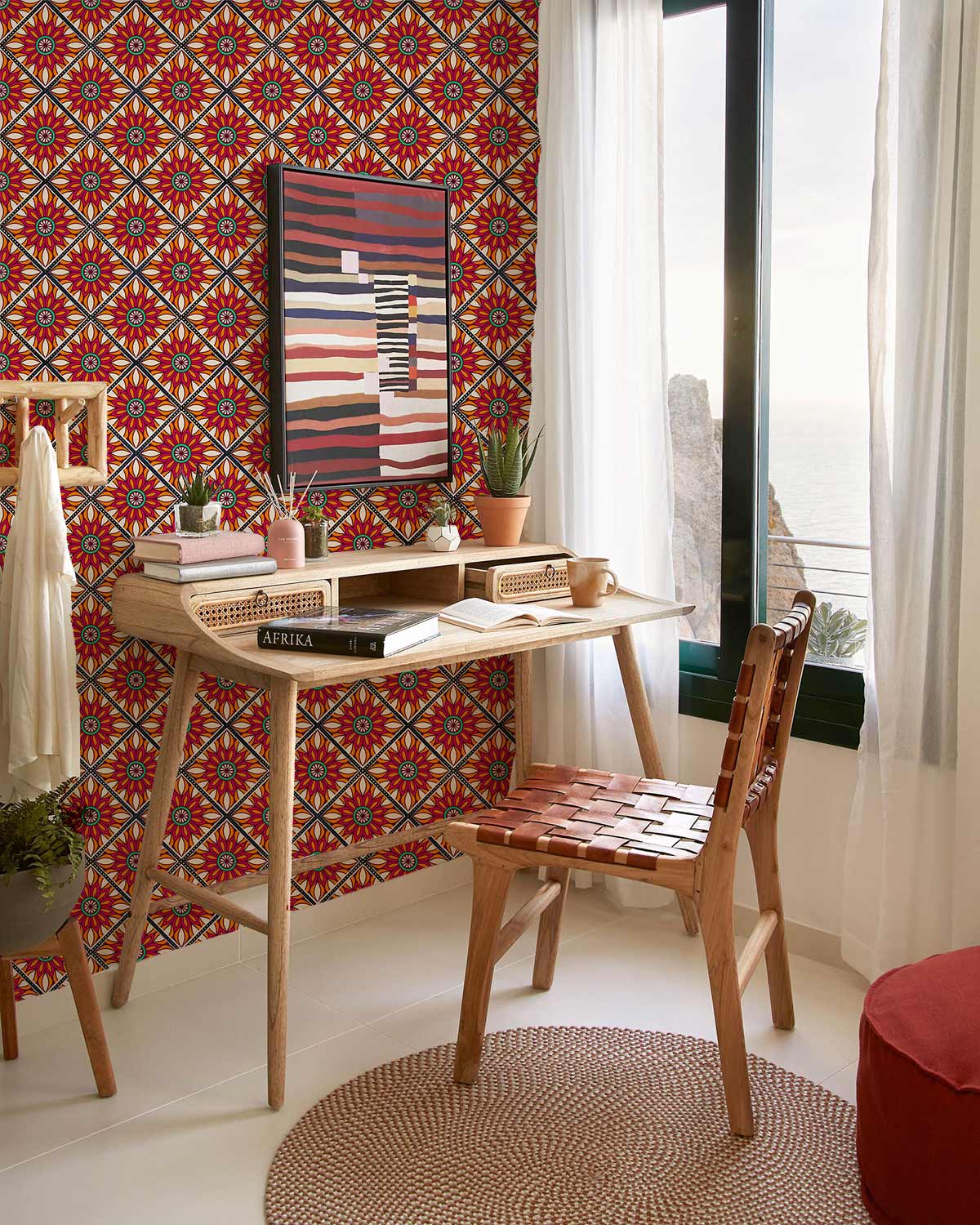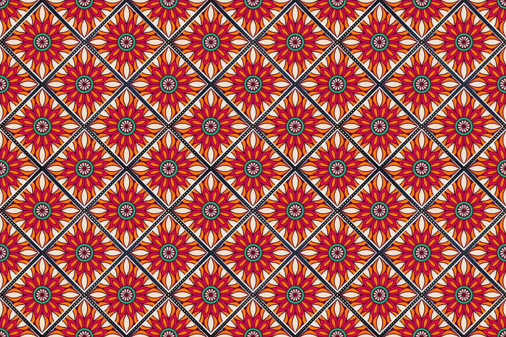 Unveil the allure of the Red Vectors Wallpaper Mural, where intricate geometric patterns meet bold floral motifs in a symphony of design. The rich red tones interlaced with warm orange and soothing black create an inviting atmosphere that dances between the lines of tradition and modernity. Ideal for both serene living spaces and energetic work environments, this mural introduces a touch of elegance and artistic flair, making every room come alive with its timeless charm.