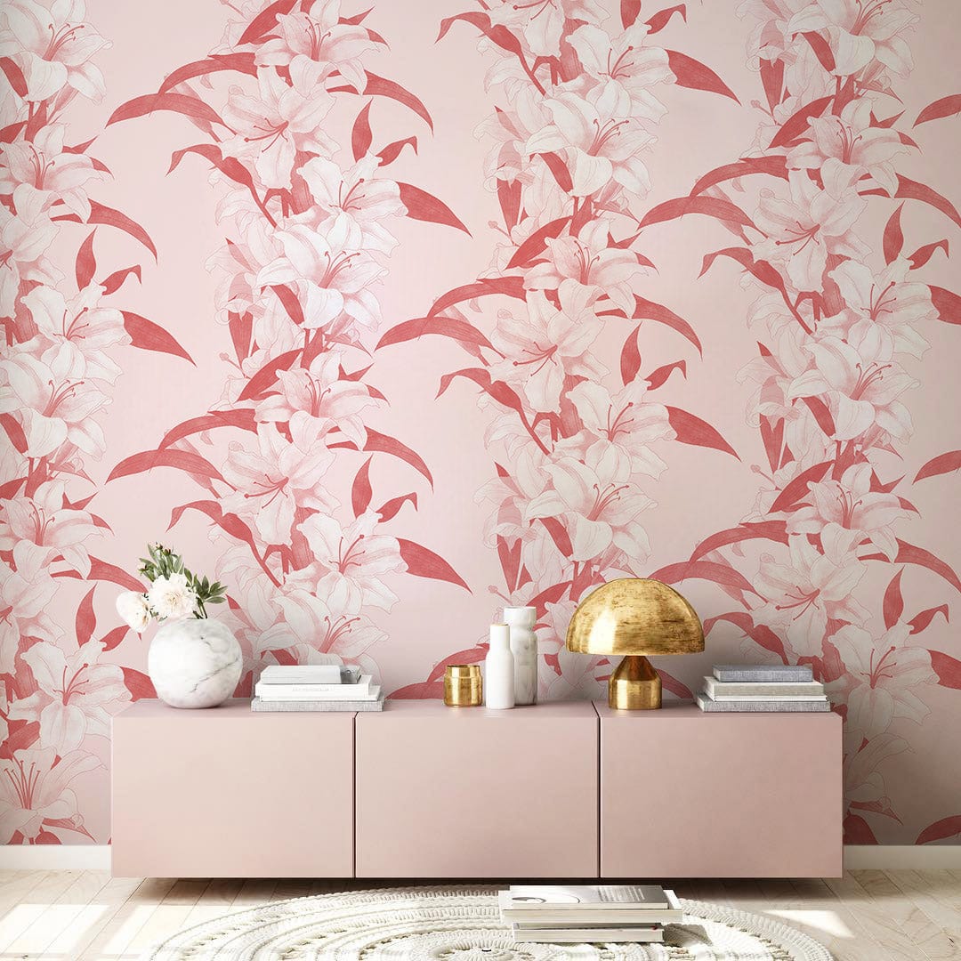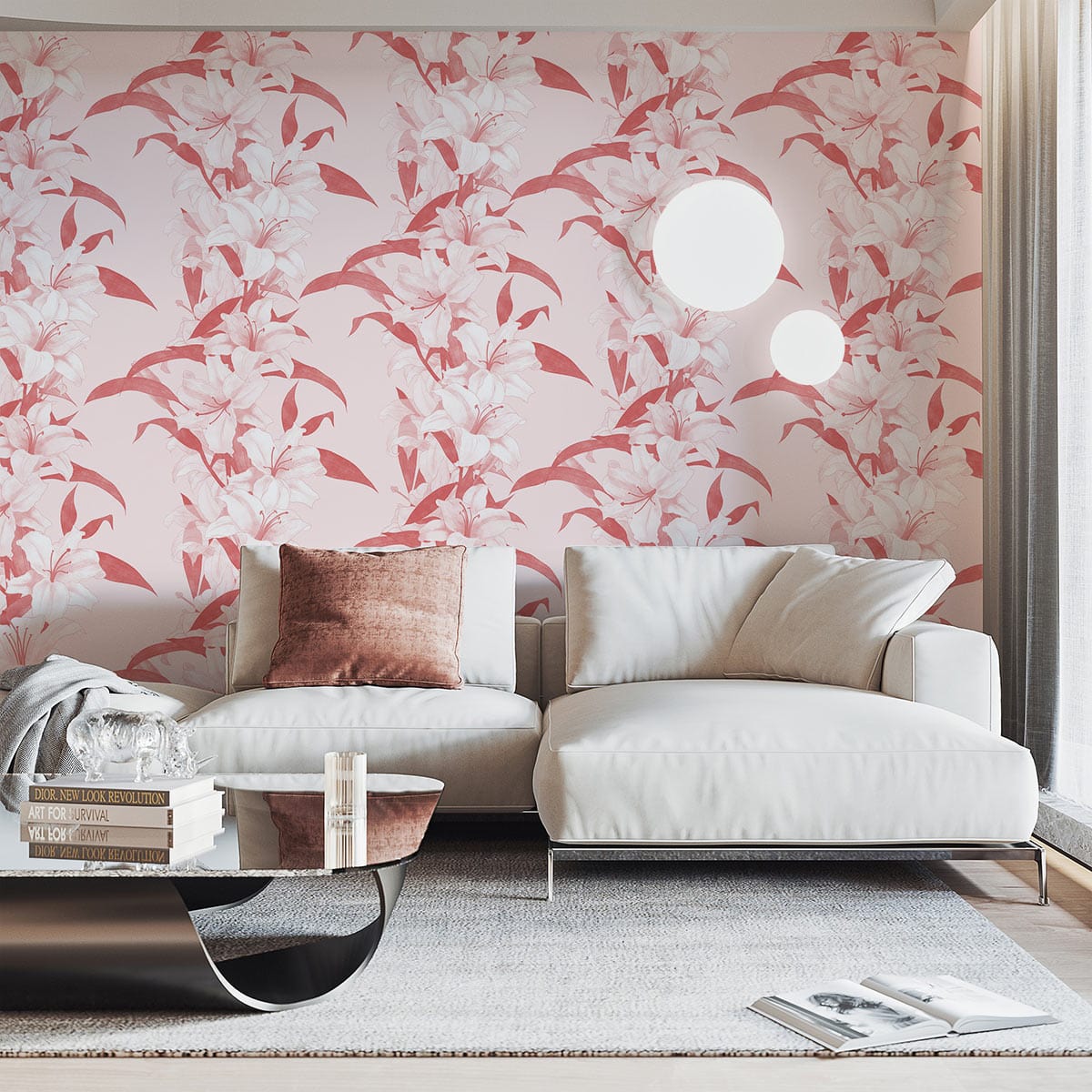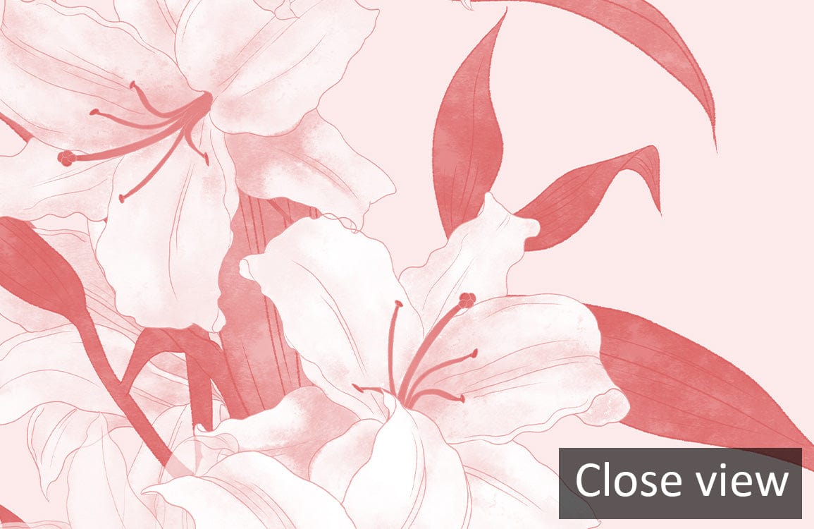 The Bloomy Pink Lily Wallpaper Mural presents an exquisite floral narrative, weaving soft pink hues and delicate lily illustrations into a captivating tapestry. Each panel offers an artistic layer of refinement, making this mural a breathtaking addition that complements both classic and contemporary interiors with effortless grace.