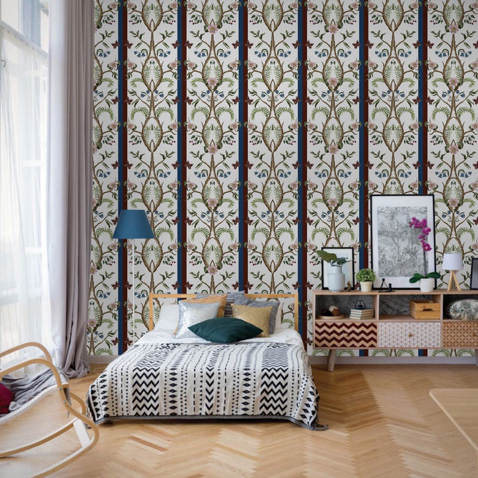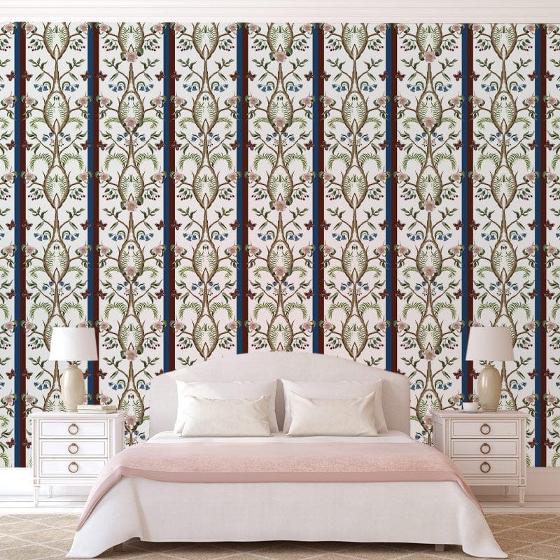 Exuding elegance, the Repeat Flower Branches Wallpaper Mural captures the essence of nature with its delicate intertwining floral motifs and sophisticated stripes. This design offers a perfect balance of intricate detail and subtle structure, making it an exquisite choice for those seeking understated refinement. Its timeless allure seamlessly complements both classic and contemporary interiors.