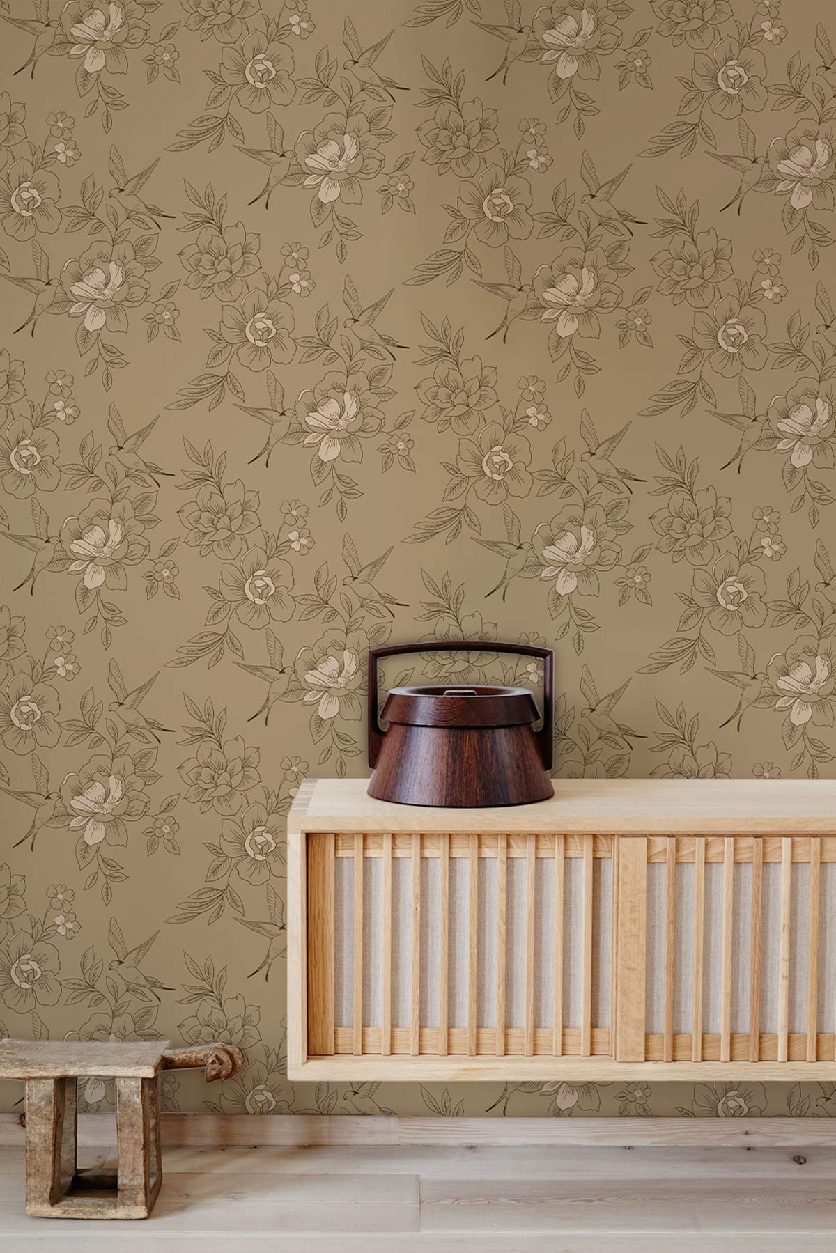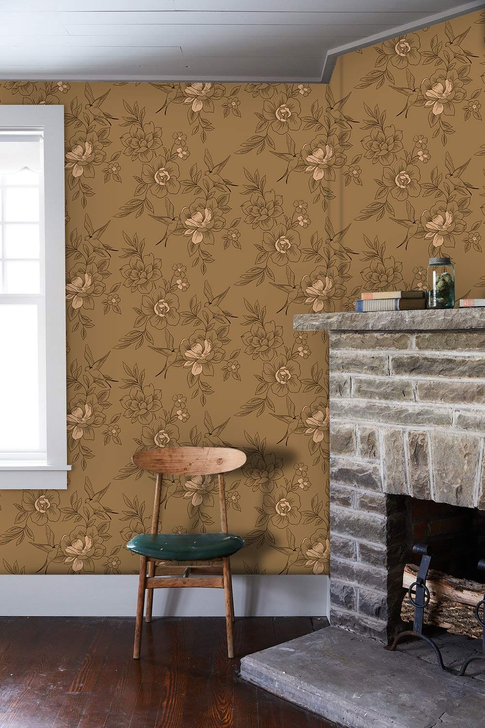 Add a tinge of freshness with this brown repeat flower pattern wallpaper mural and a simple aesthetic to your interiors. Adorn your bedroom, living room or the dining area with this natural botanical wallpaper design to revamp your space. Works with all types of furniture styles.