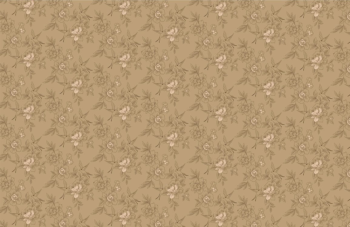 The Brown Repeat Flowers Wallpaper Mural exudes sophistication through its intricate floral patterns set against a soft, earthy backdrop. Each delicate bloom intertwines with leafy tendrils, creating a design that feels both lush and graceful. This wallpaper's subtle shades and elegant detail make it a timeless choice, easily fitting into both classic and contemporary interiors.