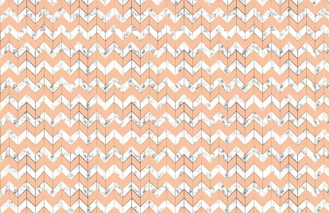 Discover the allure of the Repeat Marble Wallpaper Mural, where intricate chevron patterns meet a sophisticated blend of soft orange and white tones. This design captivates with a subtle elegance, evoking a refined ambiance suitable for a myriad of interior spaces. Its texture and delicate contrast imbue any room with a sense of artistry and elegance.