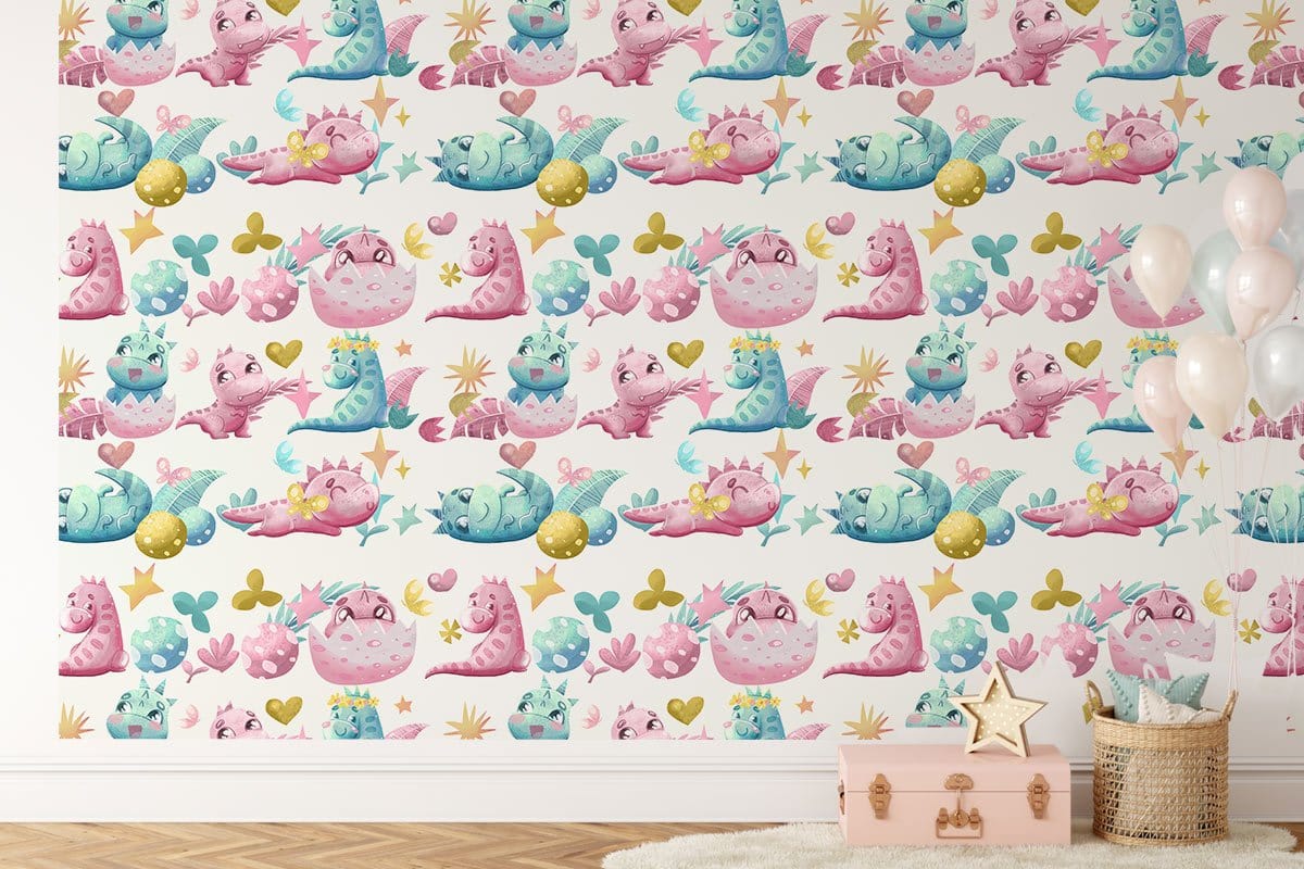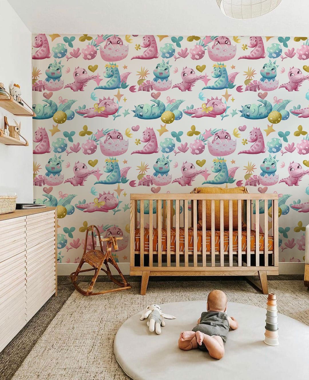 Welcome to the dinosaur world. This dinosaur wallpaper mural is one of the most popular wall mural among children. This beautiful, amazing painting of adorable baby dinosaur collection will be perfect for the indoors in your home. Interesting rendering with a natural atmosphere and a refreshing wall decoration perfect for your kid's room.
