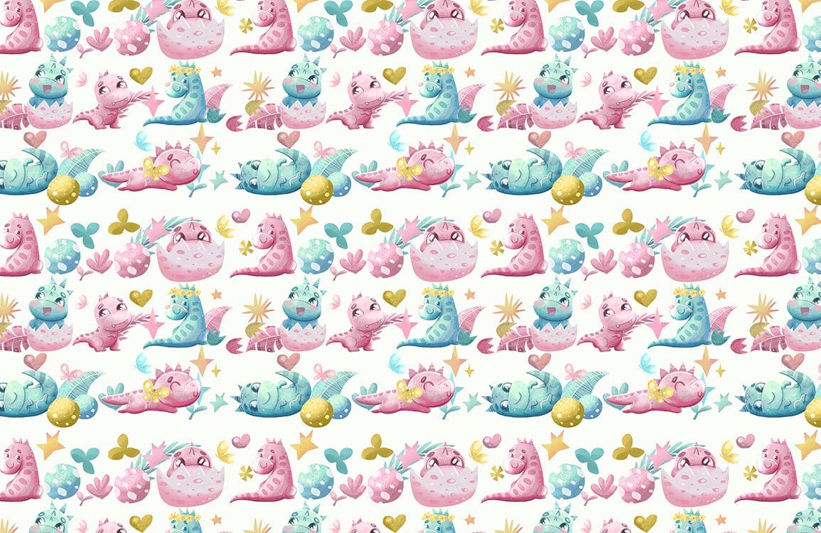 Immerse your space in whimsy with the Repeat Mini Dinosaurs Wallpaper Mural, featuring charming illustrations of playful dinosaurs in soft pastel hues. This captivating design brings a delightful vintage feel, effortlessly fitting into children's rooms or eclectic spaces with its artistic texture and delightful ambience.