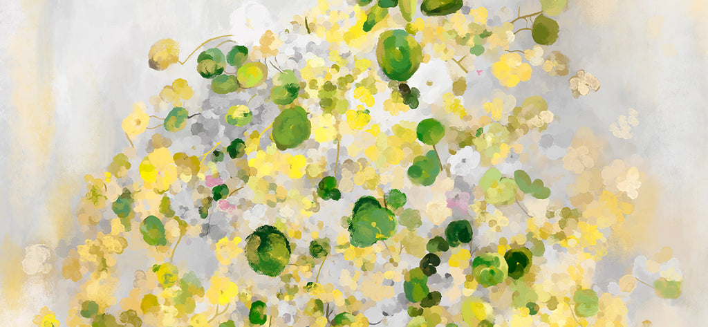 Welcome the floral tile wall mural into your space and create a modern home style. This tile wallpaper is designed in yellow floral theme under a subtle grey background, which is a perfect match to any room with sophisticated, modern, or contemporary furniture. Available in peel & stick and permanent paper types with child-safe inks. Get ready for a stunning interior design!