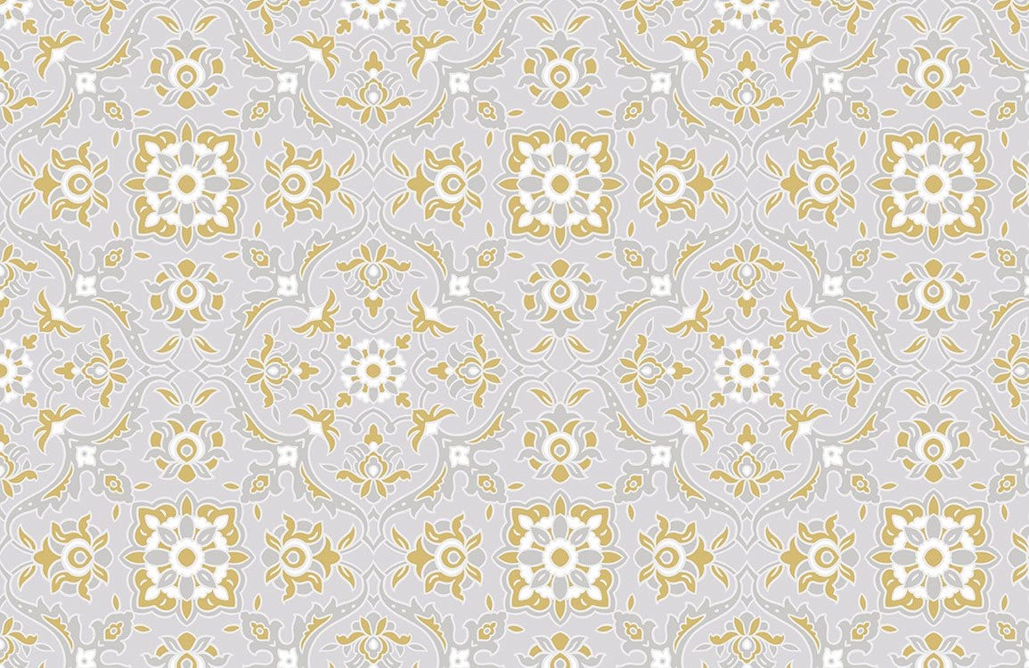 Infuse your space with elegance through this Yellow Tile Wallpaper Mural, showcasing intricate floral patterns against a soft grey backdrop. The design exudes artful symmetry and subtle charm, making it an exceptional choice for both classic and contemporary interiors.