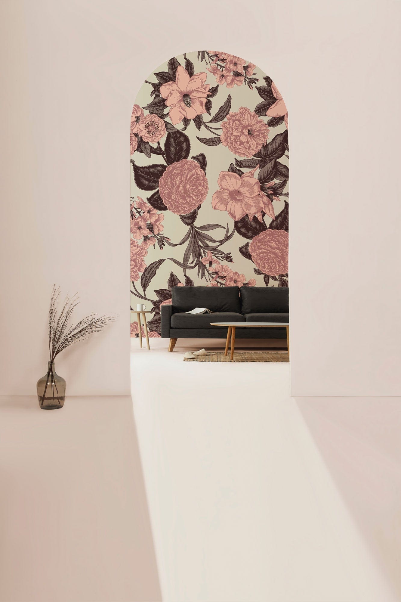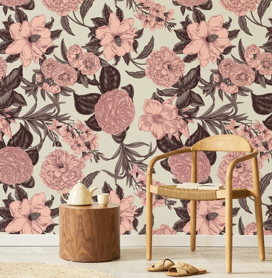 Immerse your space in the delicate charm of the Retro Pink Flowers Wallpaper Mural. Featuring intricate floral designs, this wallpaper exudes sophistication with its subtle interplay of pink and earthy tones. The beautifully detailed blossoms, set against a neutral backdrop, lend a timeless elegance that seamlessly complements various interior styles. Perfect for creating a serene yet stylish atmosphere, this mural invites a touch of nostalgia into modern and traditional settings alike.