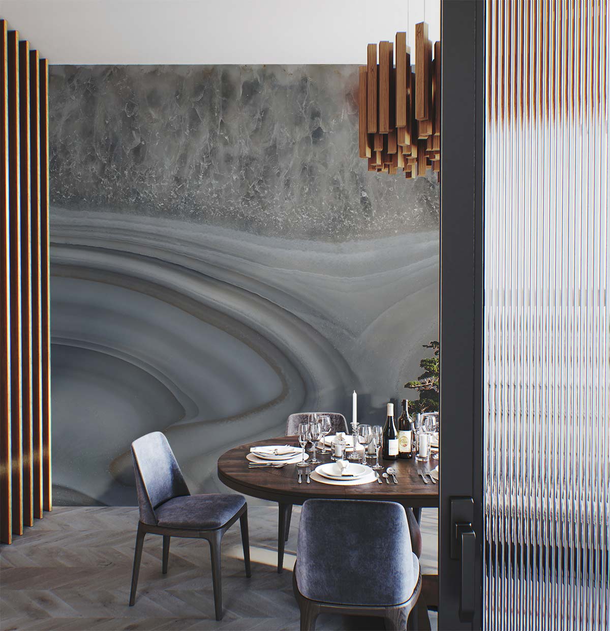 While sipping your morning coffee in the kitchen, imagine yourself outside on a cold spring day. With its cool grey tones and lovely marble-like design, our outstanding Ripple Marble Mural Wallpaper will warm the heart of any minimalist-theme enthusiast. This wallpaper has a modern style because of its slight metallic gloss and shining surface. It works well in both traditional and contemporary settings, adding texture and character to walls in any room.