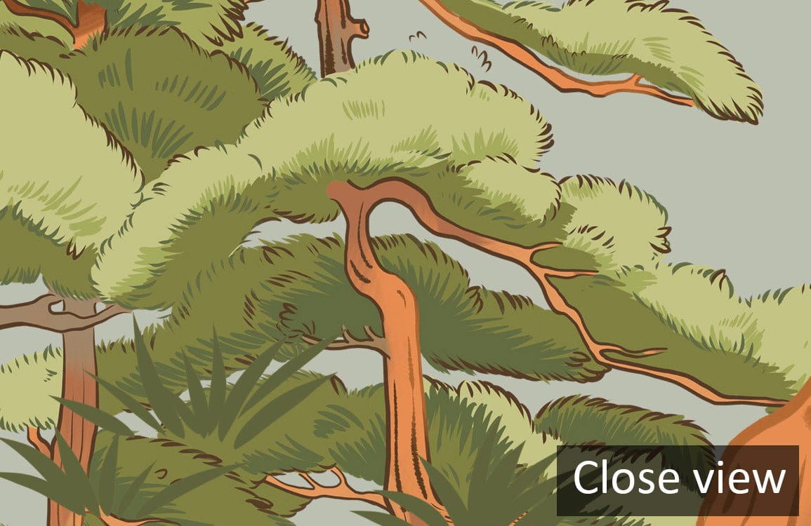Get a peaceful feeling with this leafy green woods riverbank wall mural in your living room or study. With gorgeous sepia-tinted tones of green, brown, there is definitely a vintage, dreamy feel to this work of art. These magnificent and vivid wallpapers let you dive in the inspiration and greatness of both nature and art. Great wallpaper mural choice for your hallway, bedroom and living room.