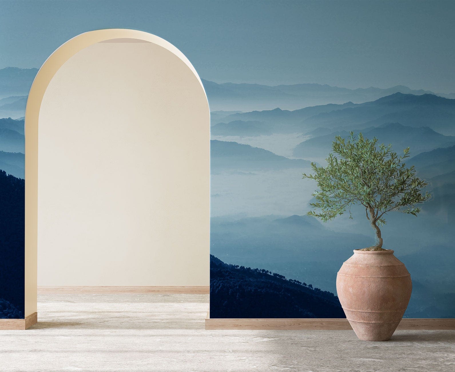 Immerse your space in a serene vista with the Rolling Misty Mountains Wallpaper Mural, where gentle undulations of rolling hills meet a tranquil sky. This mural captures the ethereal beauty of mist-shrouded peaks in varying shades of blue, offering a sophisticated and calming atmosphere. Perfect for introducing a touch of artistry and depth, it suits diverse interiors from contemporary to rustic settings.