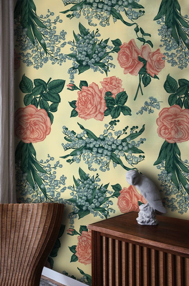 Immerse your space in the timeless elegance of the Roses & Bellflowers Wallpaper Mural. Featuring an exquisite pattern of lush pink roses intertwined with delicate bellflowers, this design brings a touch of garden sophistication indoors. The detail in each cluster of flowers is gracefully composed, creating a charming yet refined ambience that complements both modern and vintage interiors.