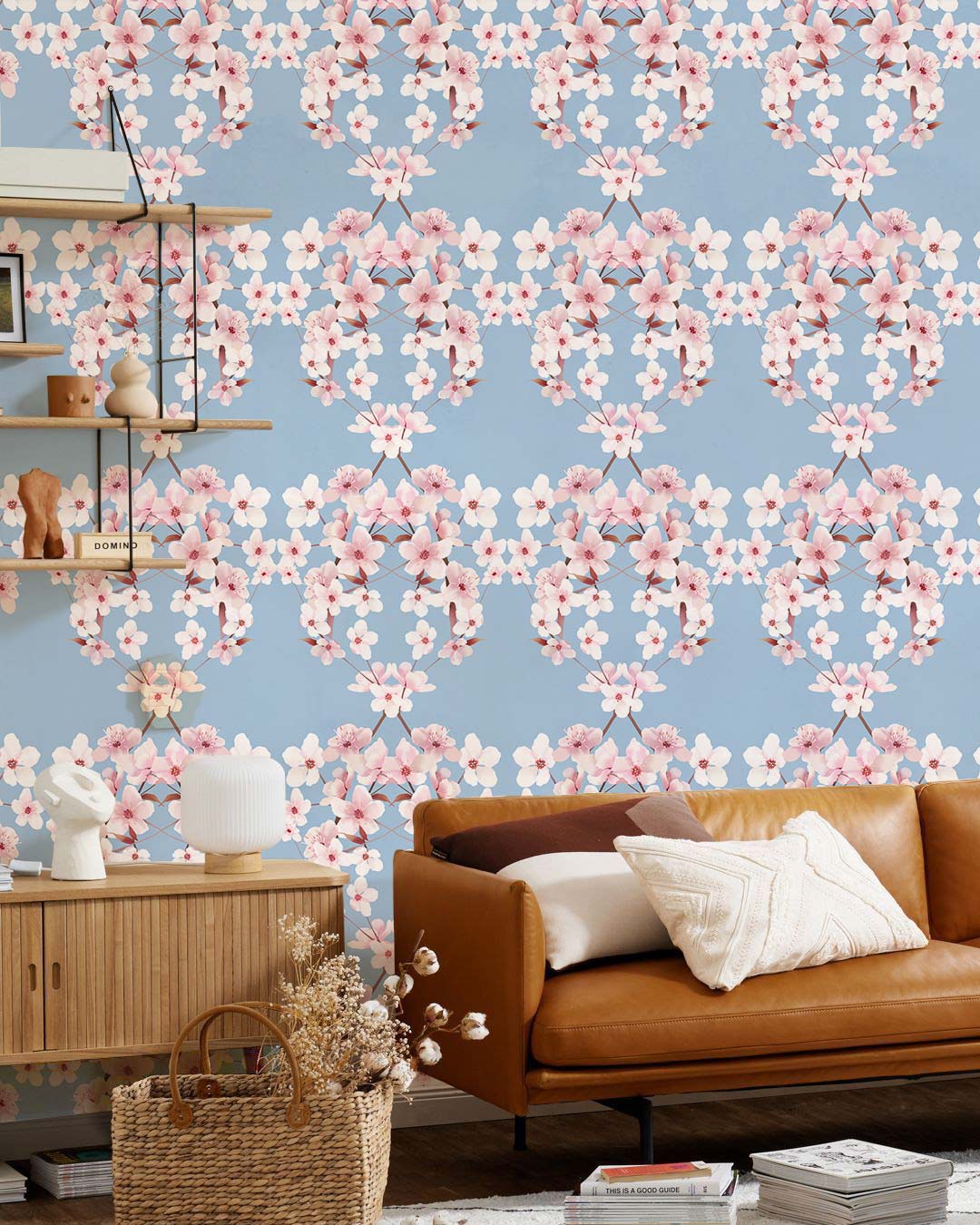 Immerse your space in the delicate artistry of the Sakura Flower Pattern Wallpaper Mural. This exquisite design features a gentle cascade of blossoms, meticulously arranged against a serene blue backdrop. Each petal reveals intricate detailing, capturing nature's grace and creating a tranquil ambience. The mural's harmonious blend of colours and textures speaks to sophisticated taste, making it an ideal choice for adding a touch of elegance to any room.