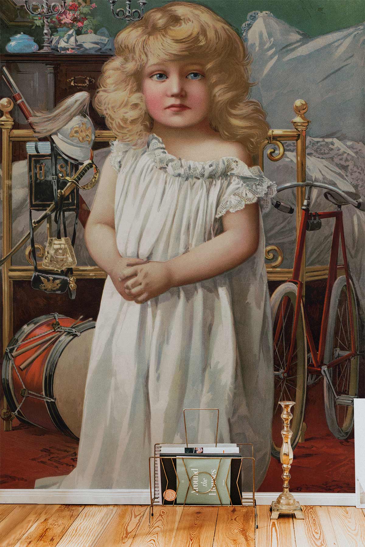 Give your kids a new reason to enjoy their Christmas this year with this lovely mural wallpaper. Seems like Santa has missed this little girl presents鈥? a classic vintage portrait for a small little angelic face girl with sadness in her eyes that will make your place look so artistic and very chic. This little girl with the classic style at the background behind her will give a new taste to your living room. Style this wallpaper with classic or semi modern furnishing and keep your home full of art and filled with elegancy.